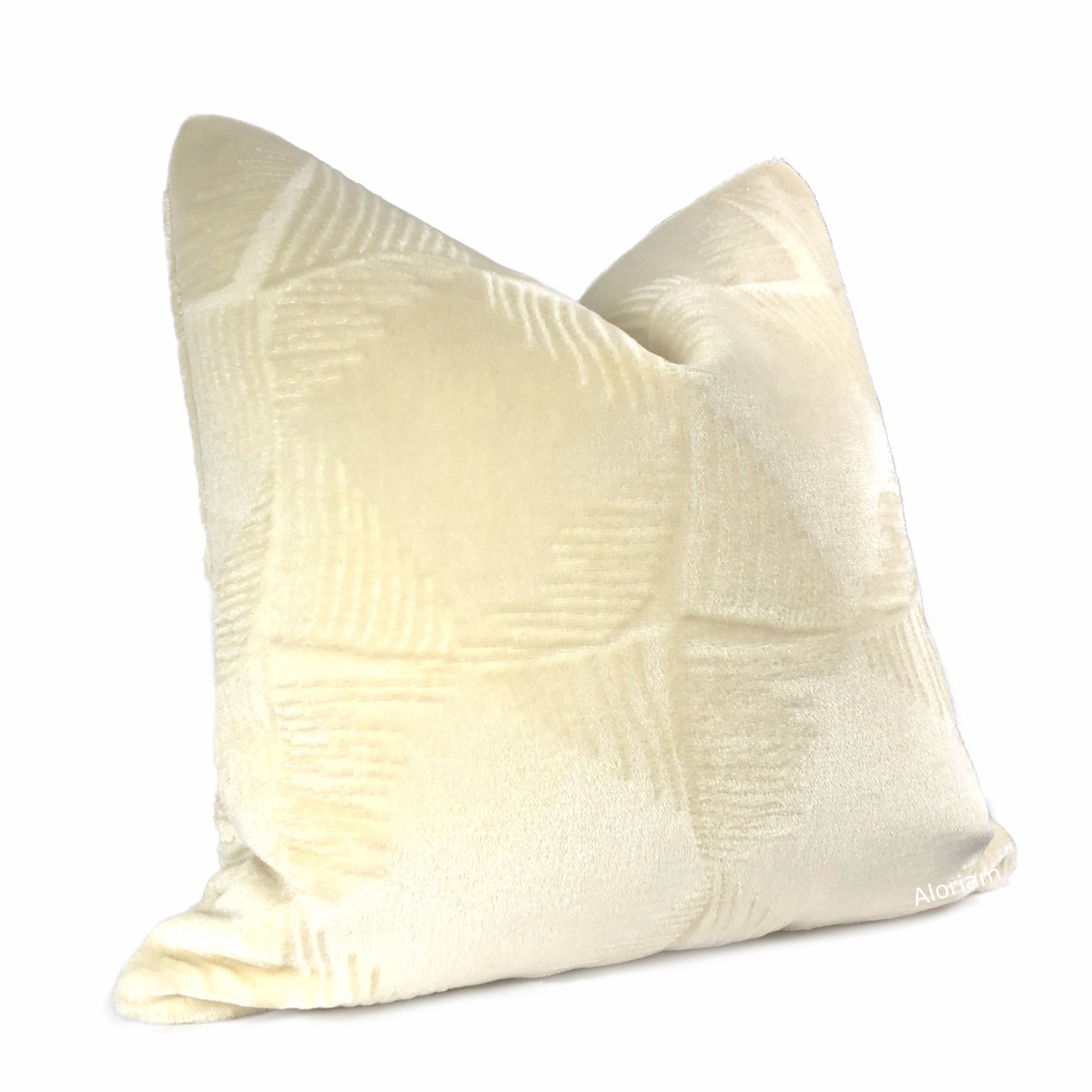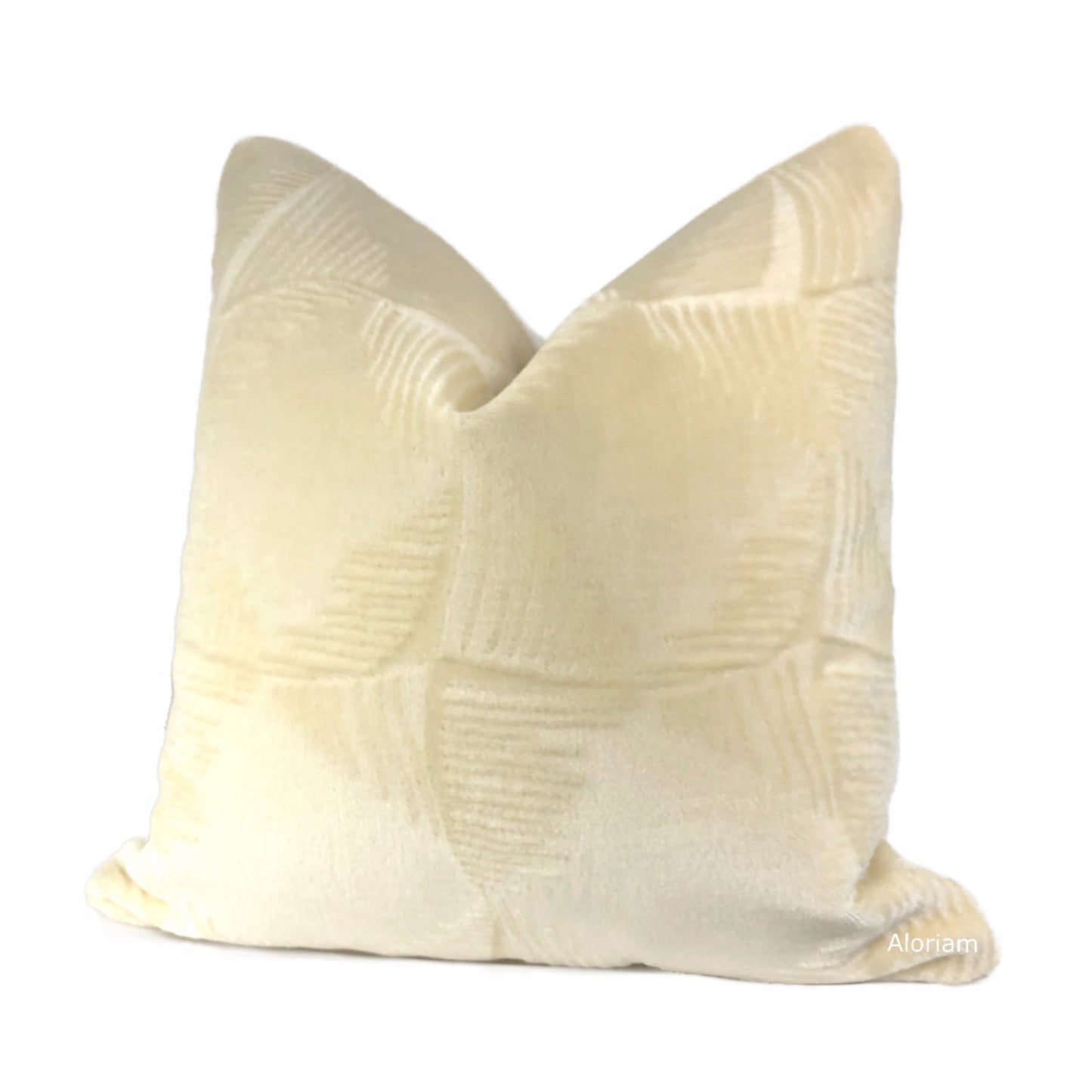 The Ludlow velvet pillow will add sophistication and interest to contemporary and traditional decor alike. The cream color is a fantastic warm shade that will work with many color schemes. The Ludlow pillow is available in additional colors. Photographed on 19x19 cover (filled with 20x20 insert).