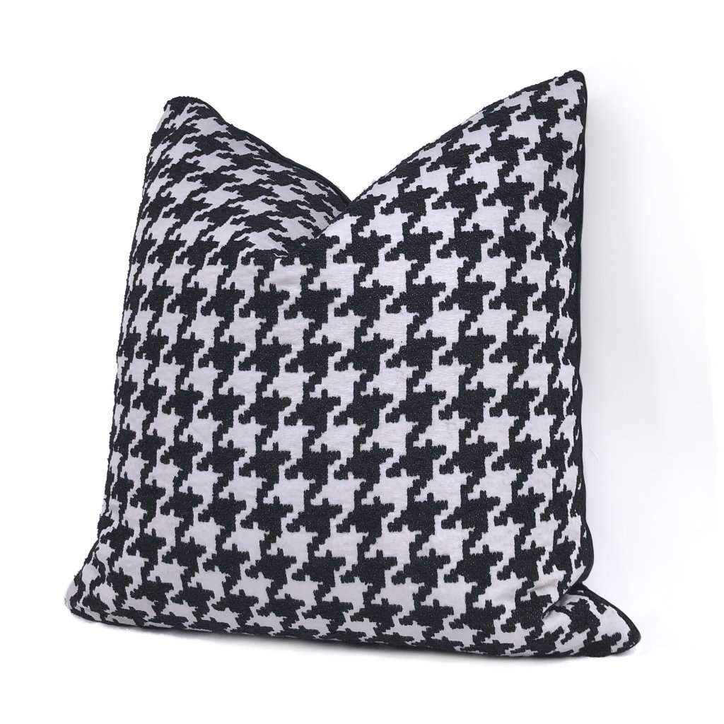 (CLEARANCE) Lyndon Black & White Houndstooth Chenille Pillow Cover