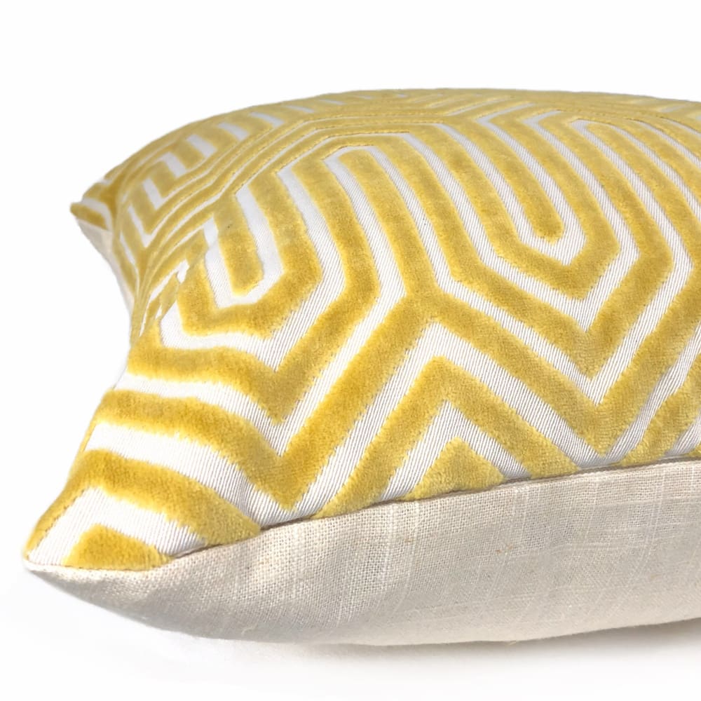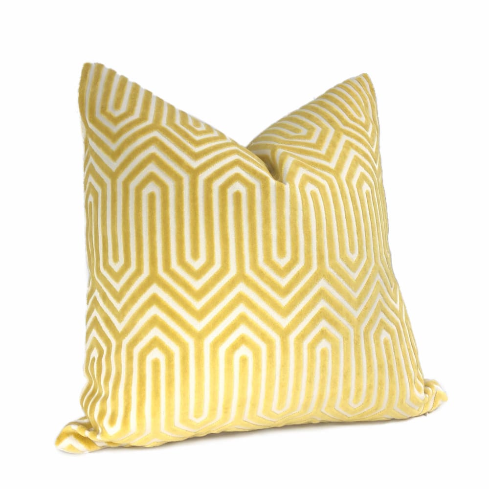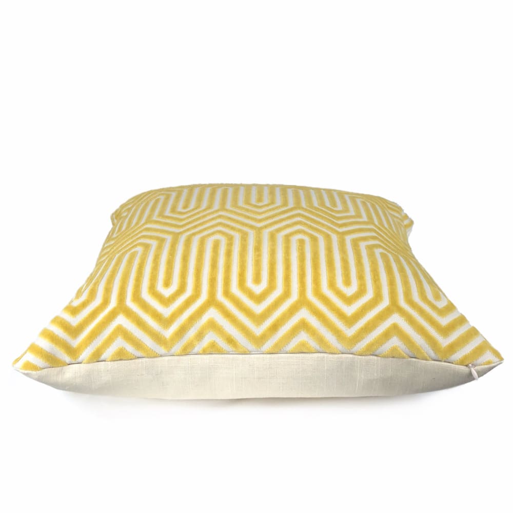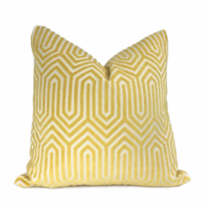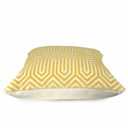 (CLEARANCE) Maestro Geometric Buttercup Yellow Cut Velvet Pillow Cover