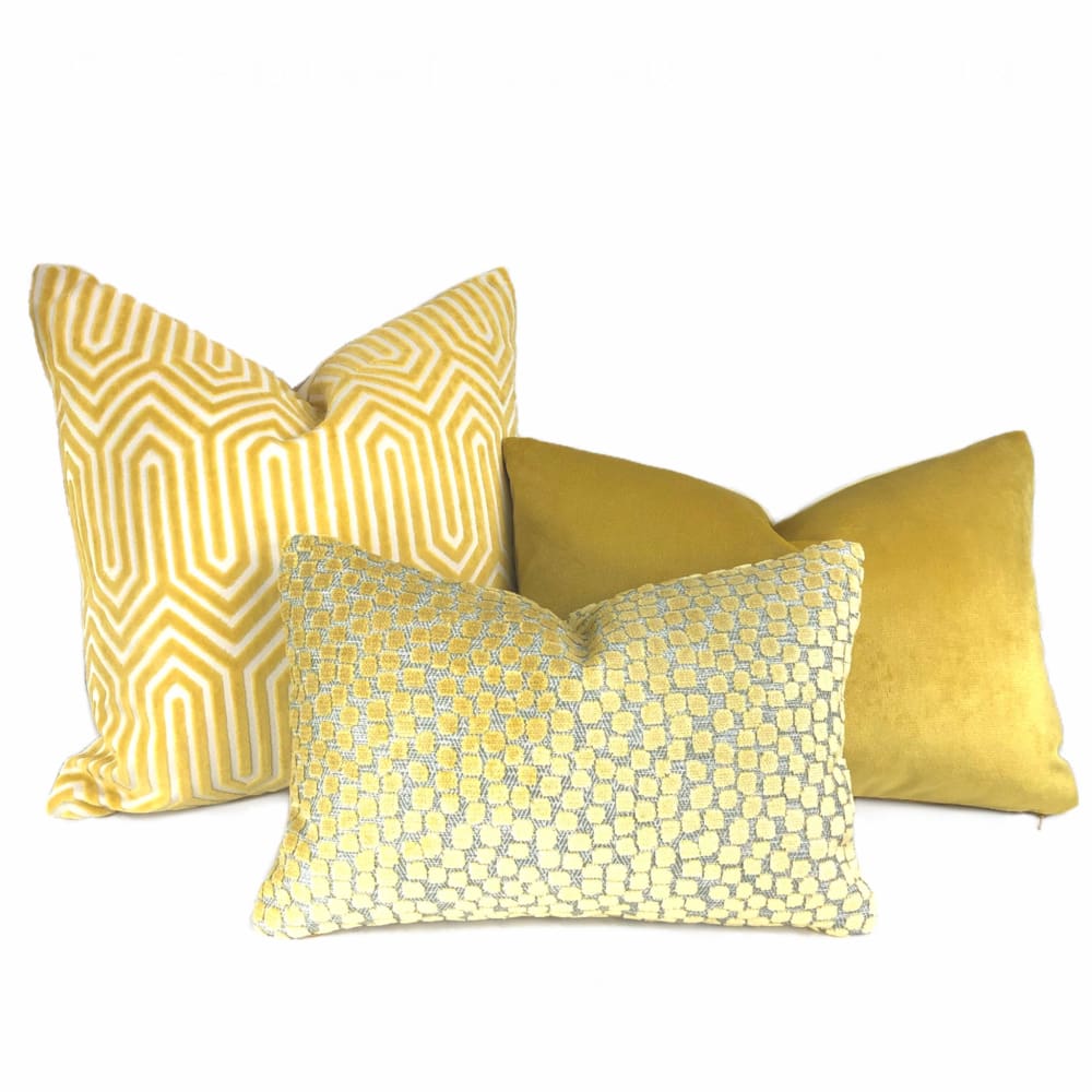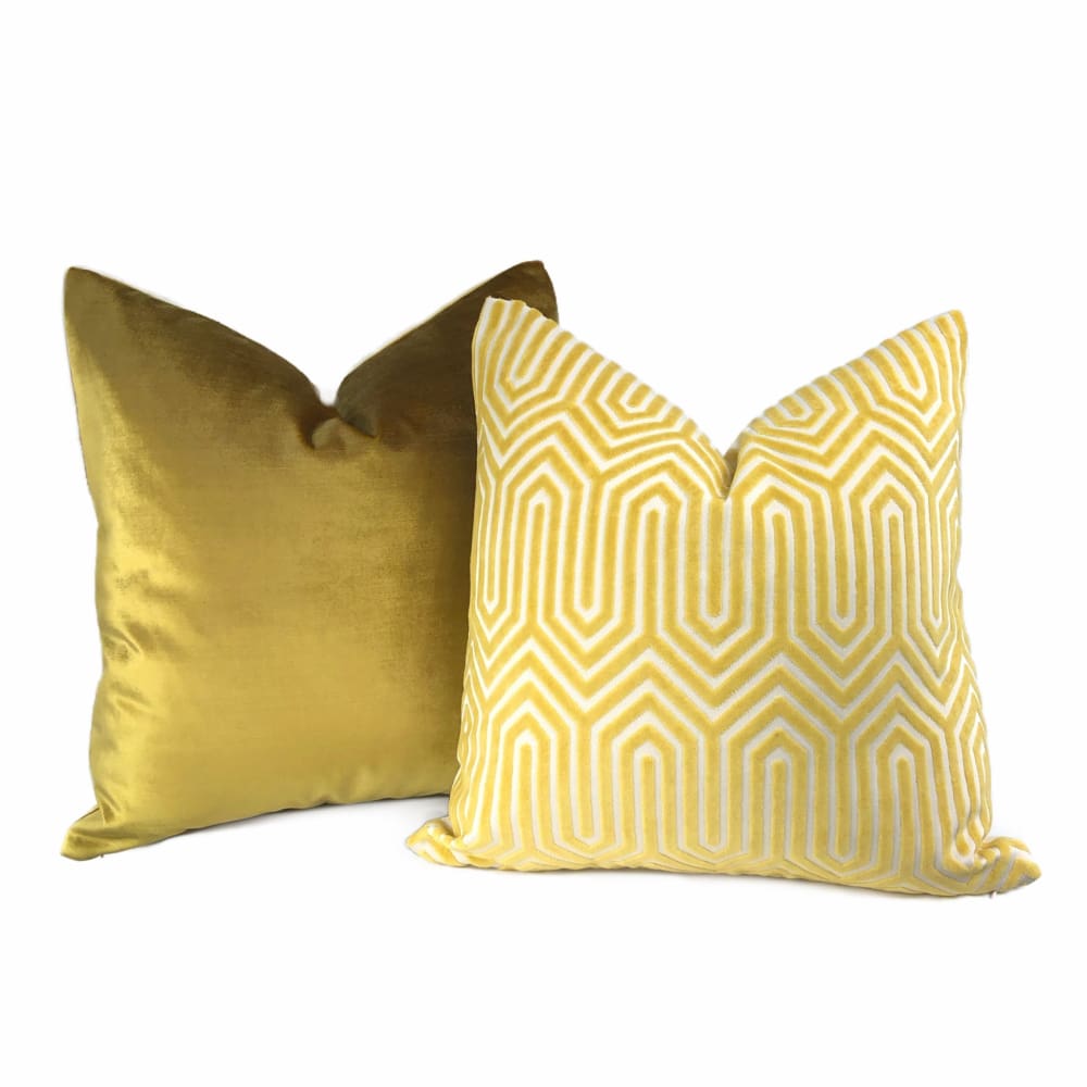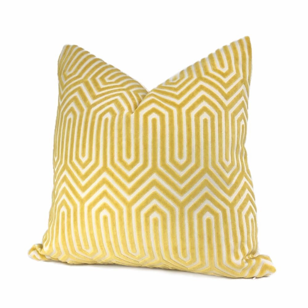 (CLEARANCE) Maestro Geometric Buttercup Yellow Cut Velvet Pillow Cover