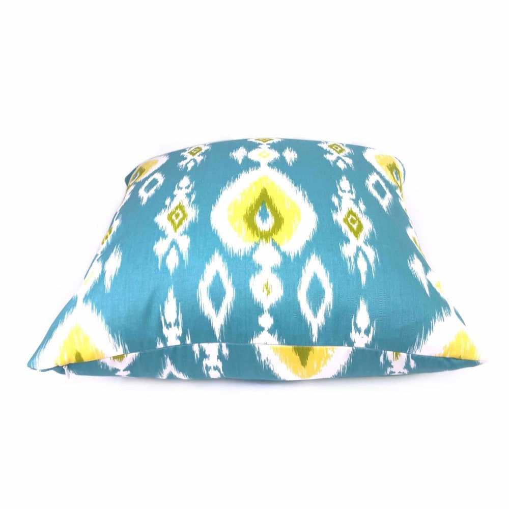 (CLEARANCE) Malabar Turquoise Blue Yellow White Ikat Pillow Cover