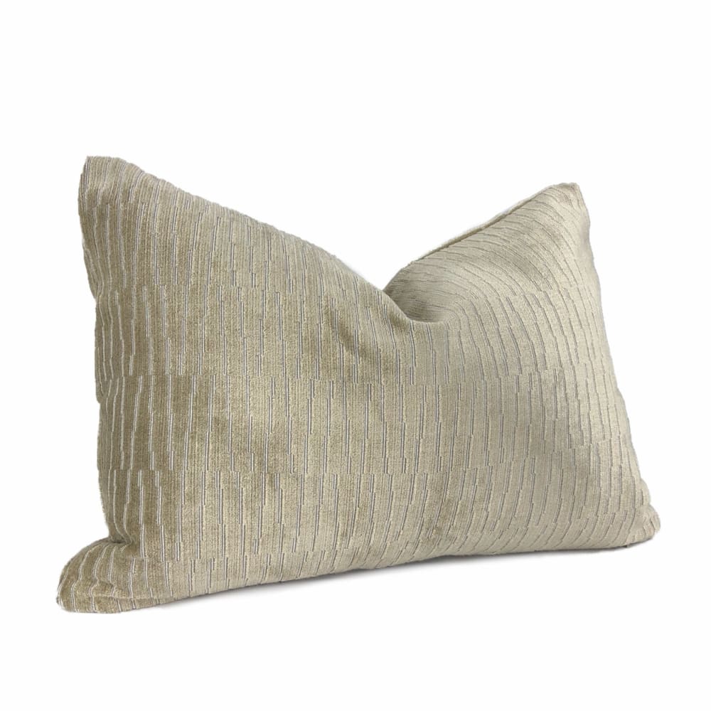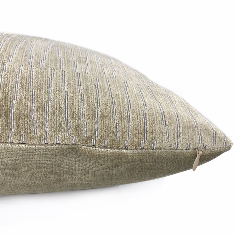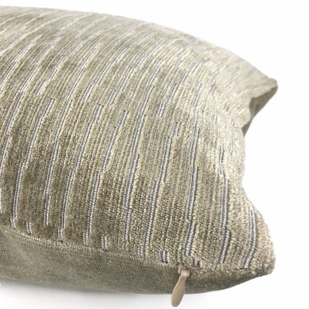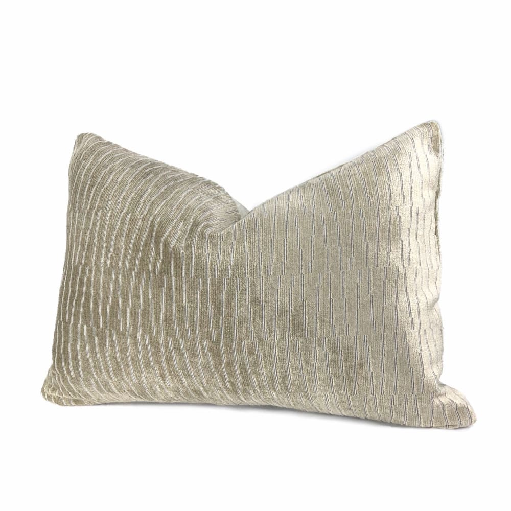 Our limited edition Bresis pillow cover features a subtle zig zag pattern woven in light taupe brown. This luscious designer velvet designed by Manuel Canovas for Cowtan & Tout retails for over $200/yard and is a rare find. Don’t miss it! Photograph shows the 13x19 cover (filled with a 14x20 insert).