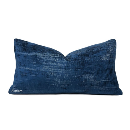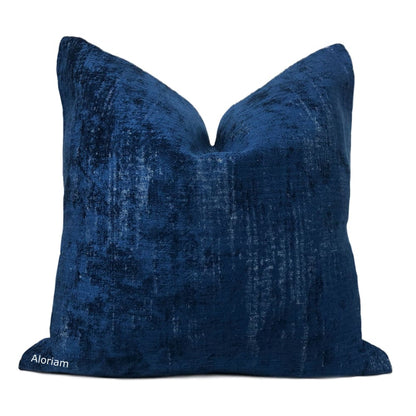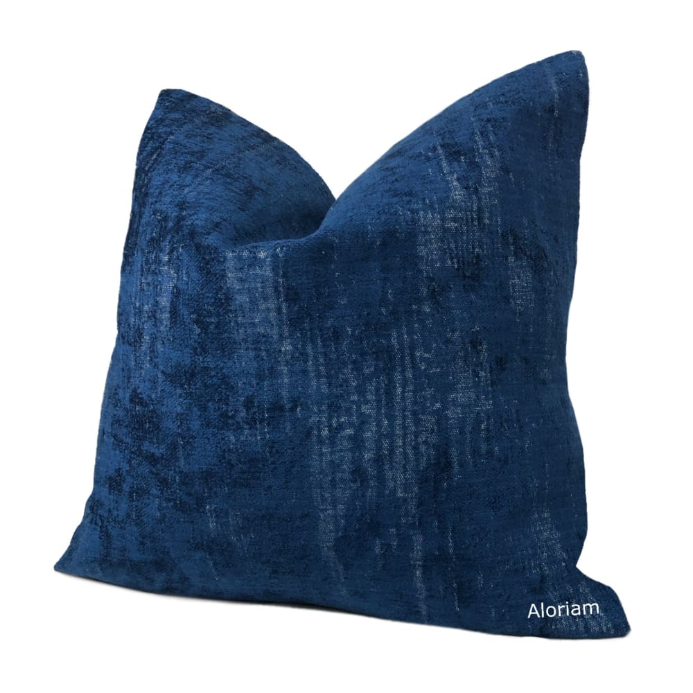 Marsden Sapphire Blue Distressed Tonal Chenille Pillow Cover