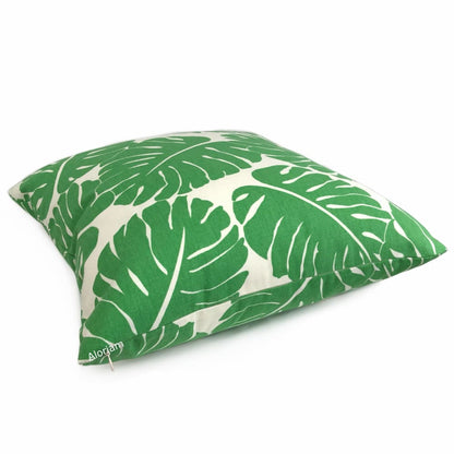 Martinique Green Modern Palm Leaf Print Pillow Cover
