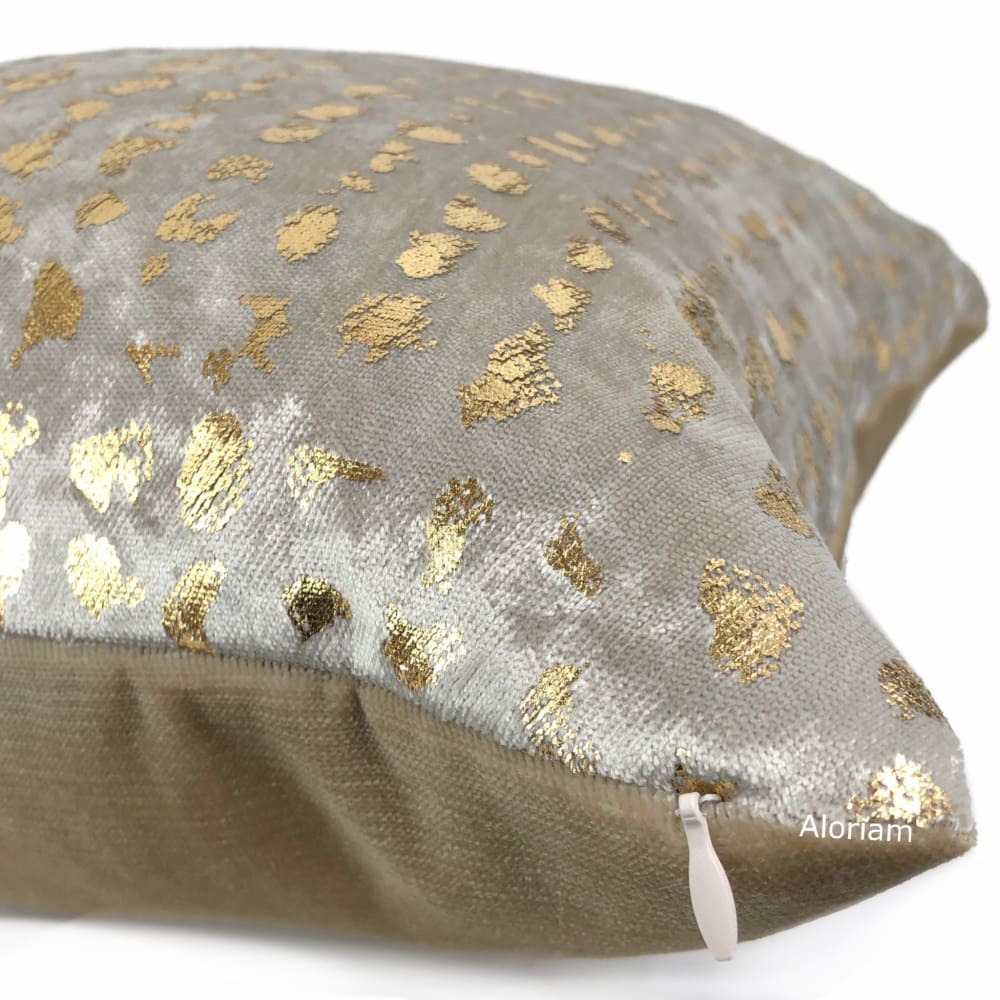 Matteo Champagne & Gold Metallic Leopard Spot Pillow Cover