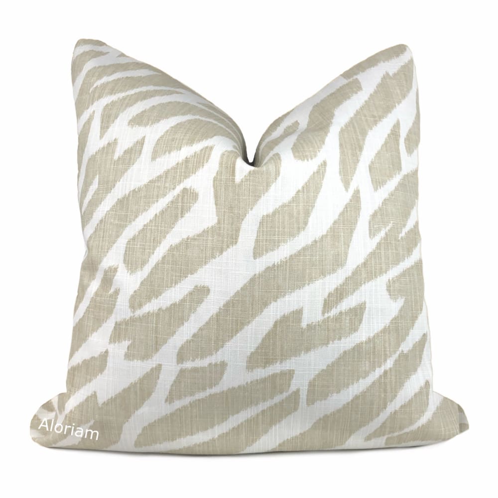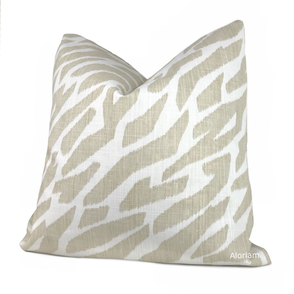 The Matthias pillow cover features an abstract zebra stripe design printed beige on an off-white background. This modern take on the classic zebra stripe will freshen up any space!