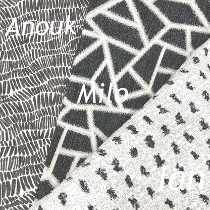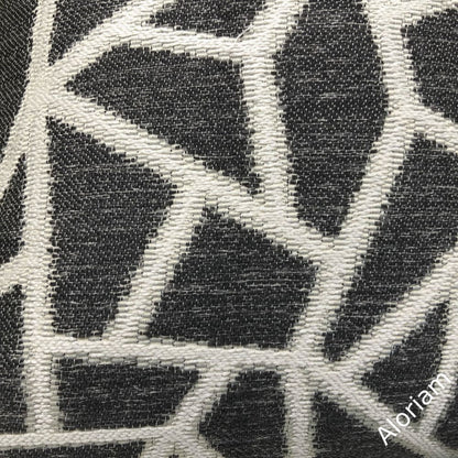 Milo is a modern pillow cover with a mosaic pattern woven in off-white and very dark gray (almost black).