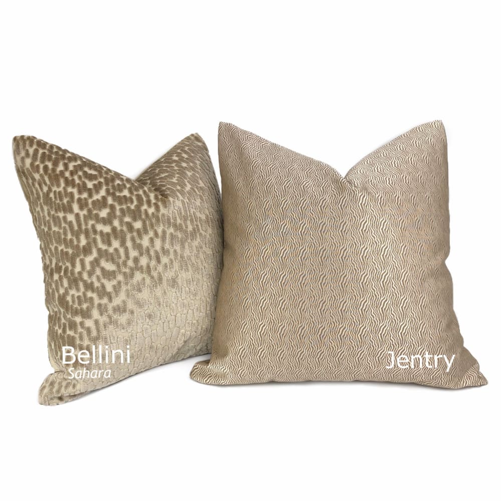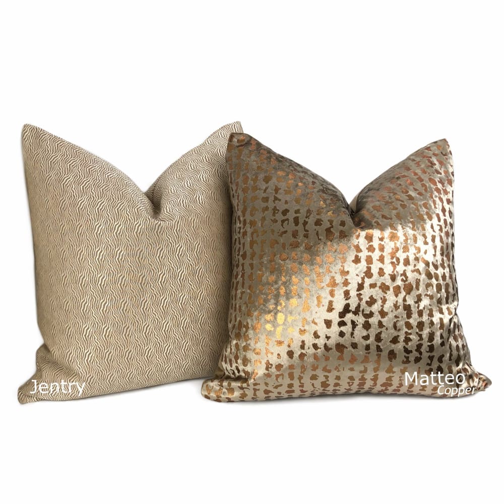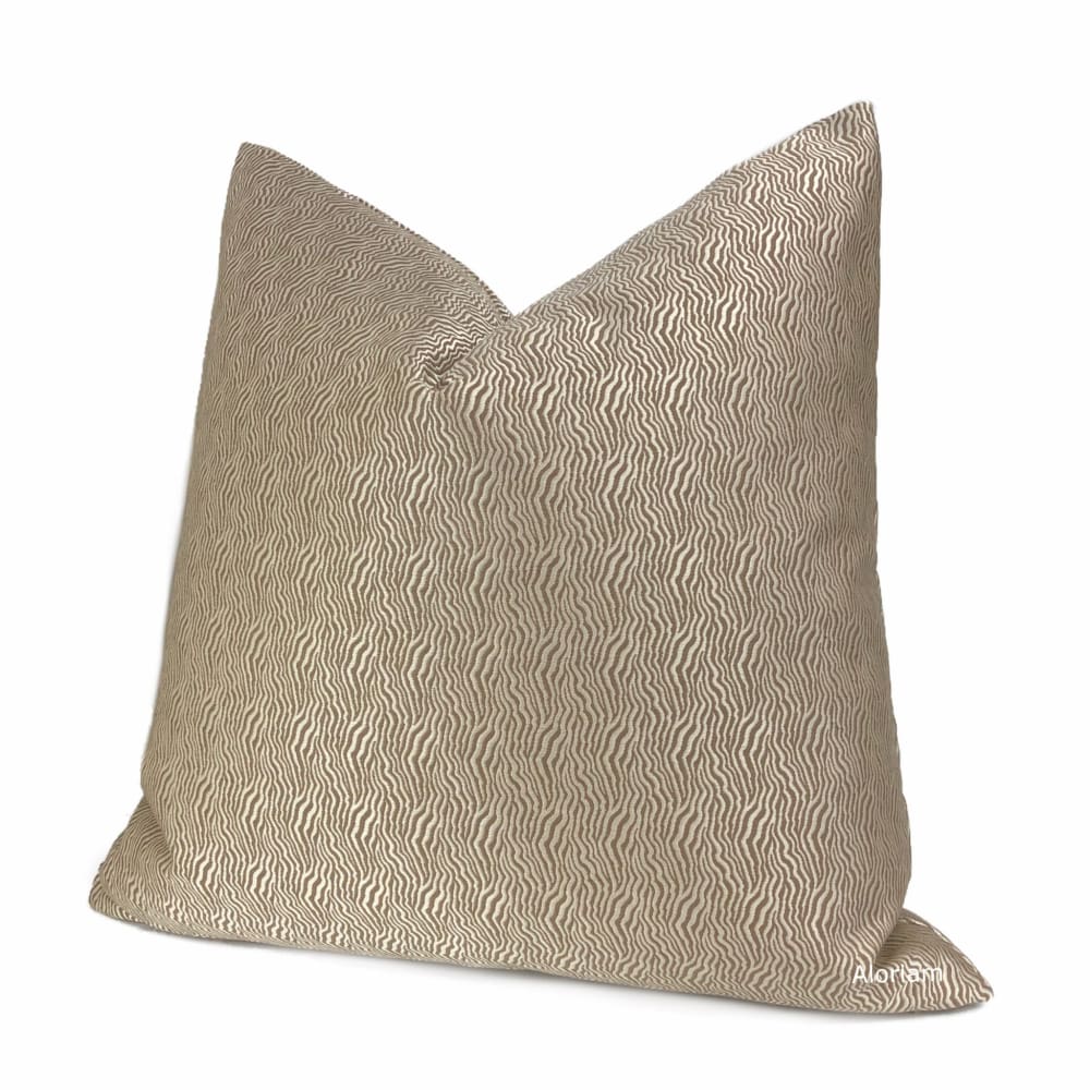 Almost sold out! Sewn in a wavy lines pattern woven in taupe and silvery beige, this abstract design is perfect for any modern decor. The neutral palette allows this pillow cover to play well with many other designs. Be sure to zoom in on the photos to appreciate the rich texture and luster of this designer upholstery fabric!