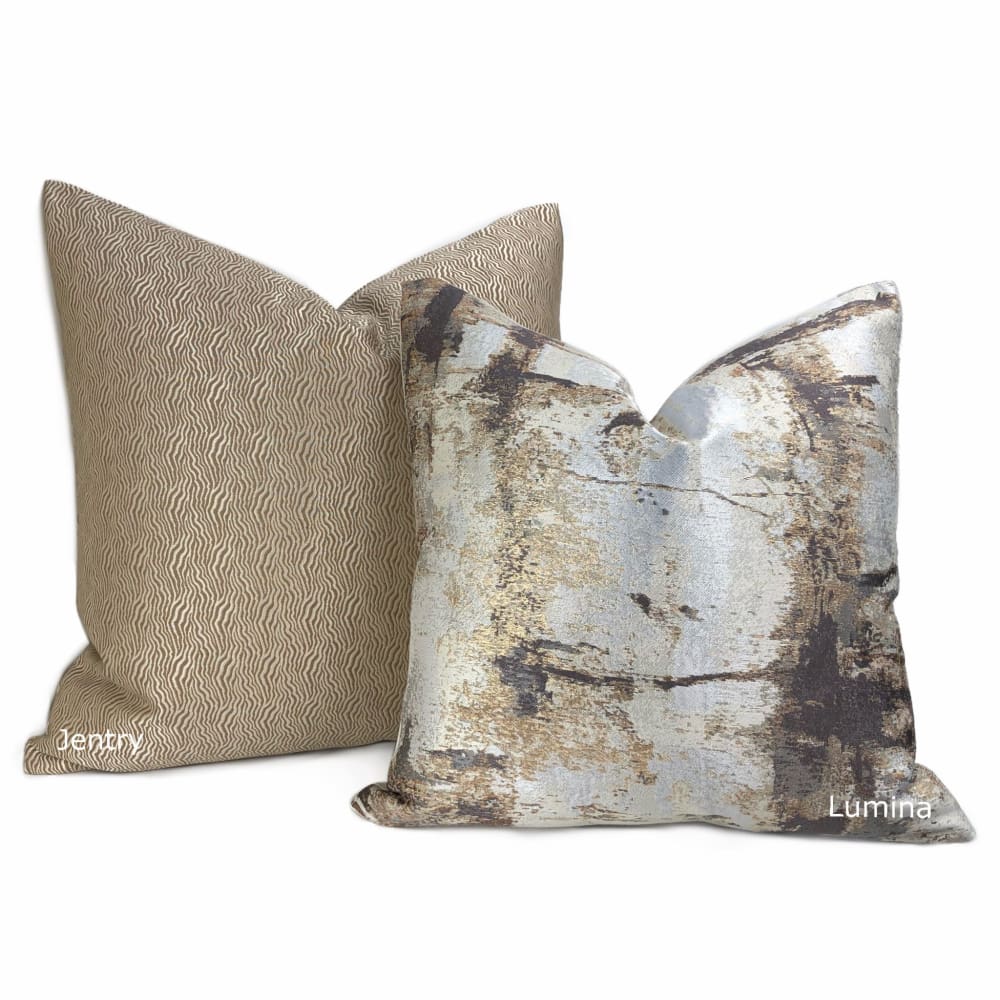 Kravet Candice Olson Abstract Wavy Lines Silvery Beige Taupe Throw Pillow Cushion Cover (Jentry fabric)