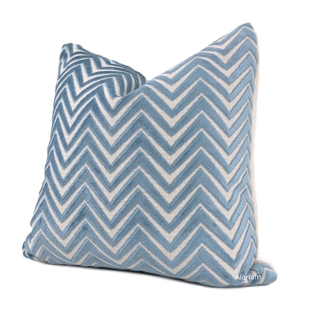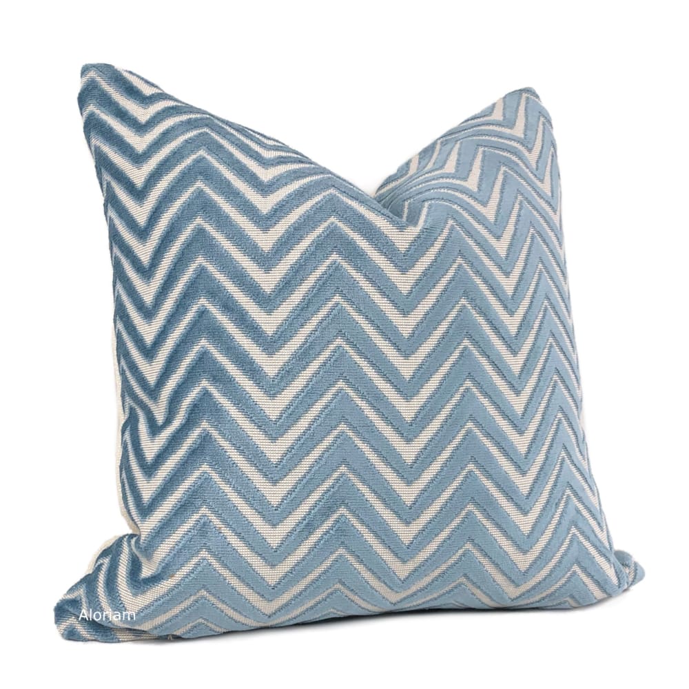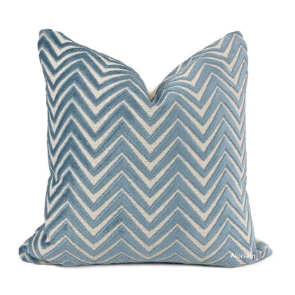 Monterrey Surf Blue Chevron Cut Velvet Pillow Cover