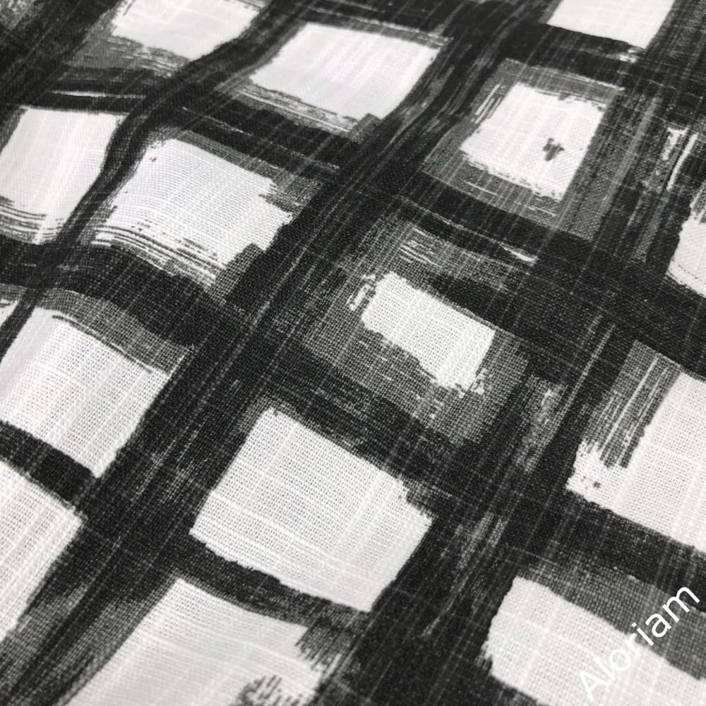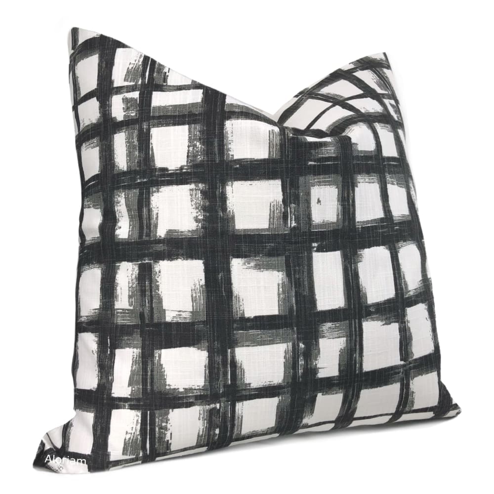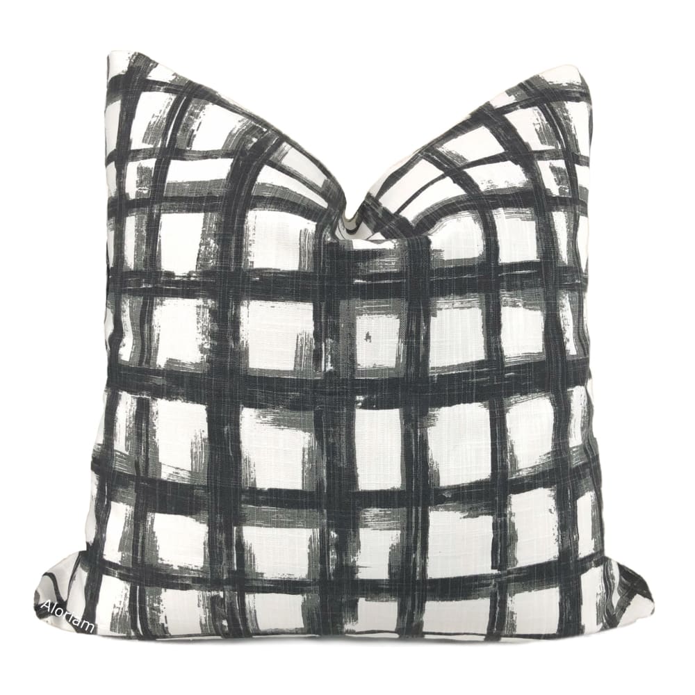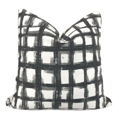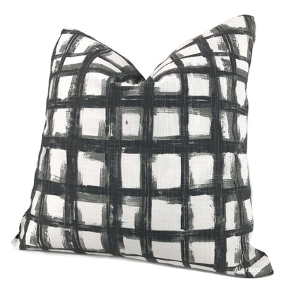 The Murphy pillow cover features a brushstroke grid design printed in black on a white background. This is a classic checks pattern with a fresh modern look perfect for contemporary interiors.