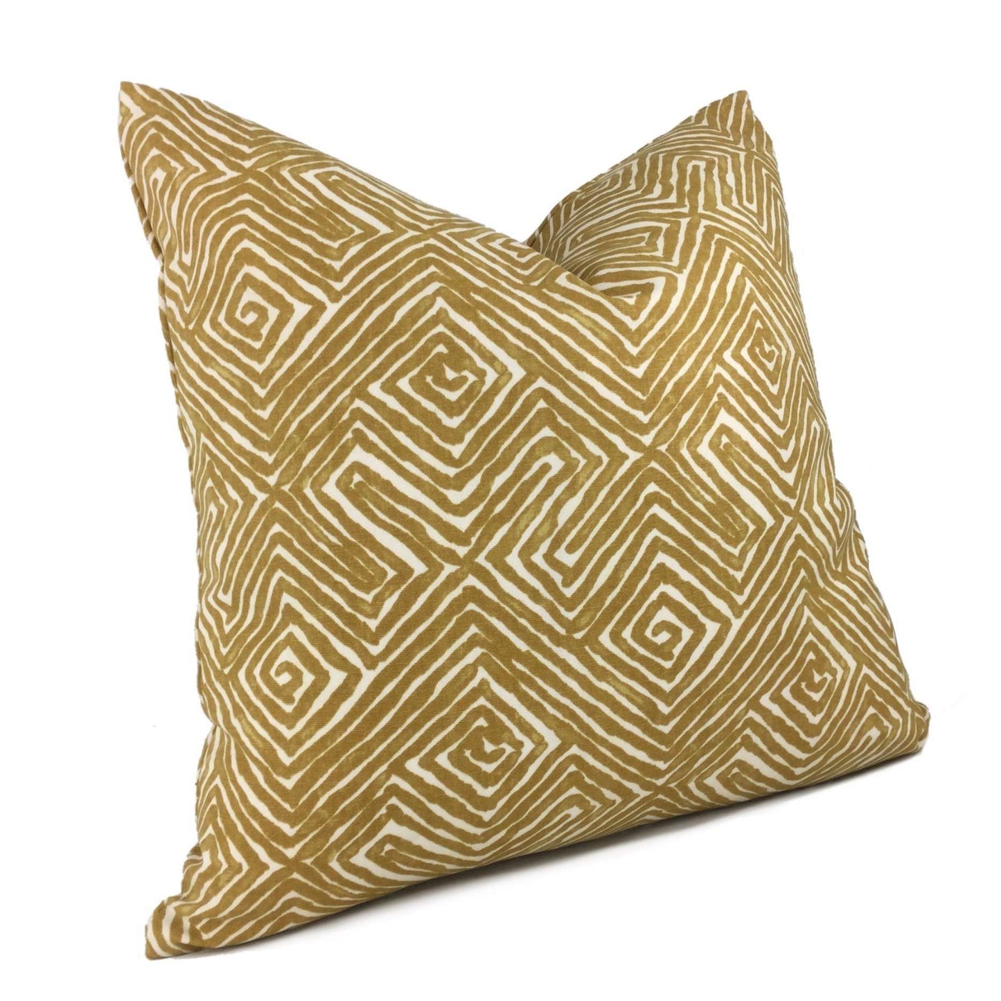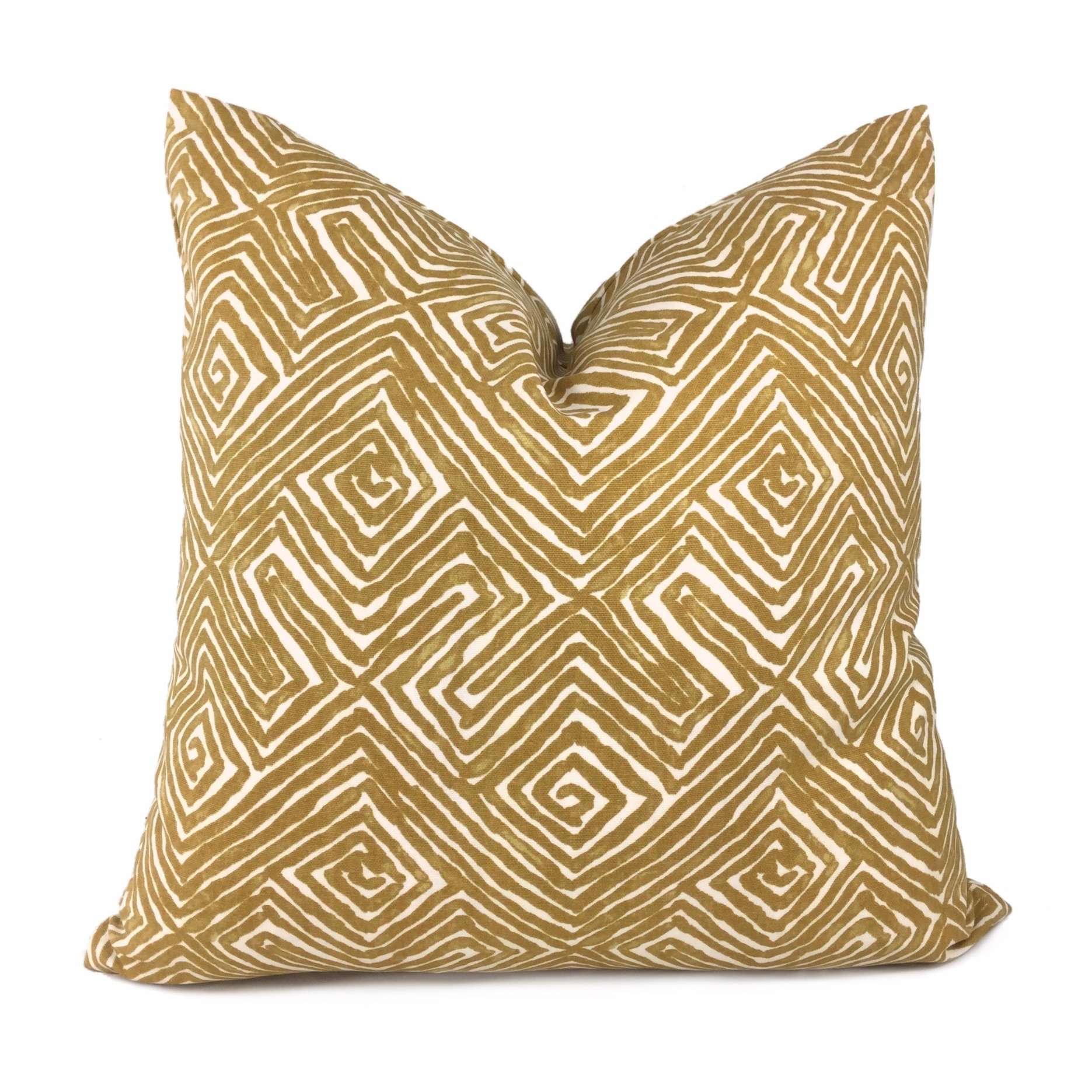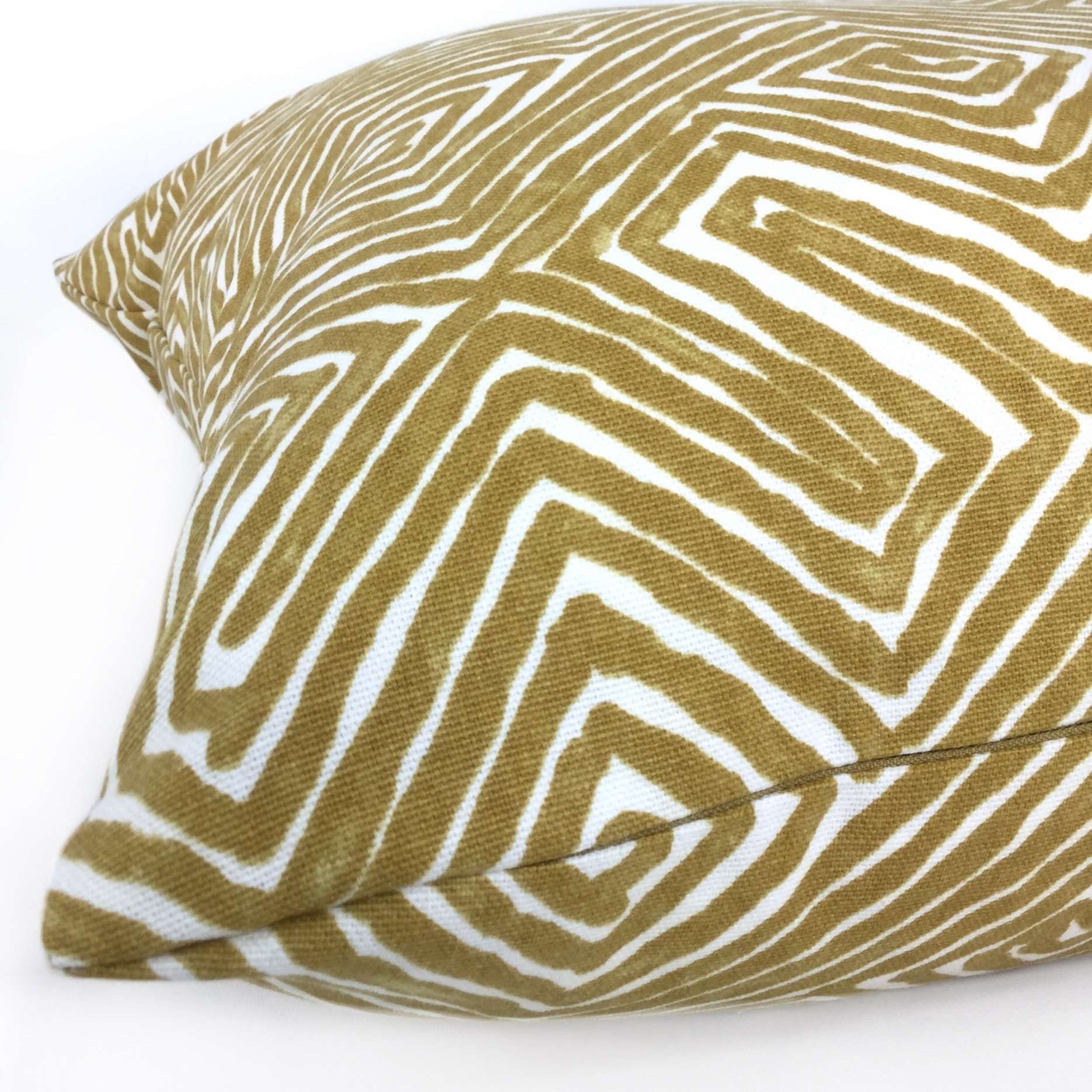 (CLEARANCE) Nate Berkus Tribal Maze Ochre Yellow Cream Cotton Print Pillow Cover