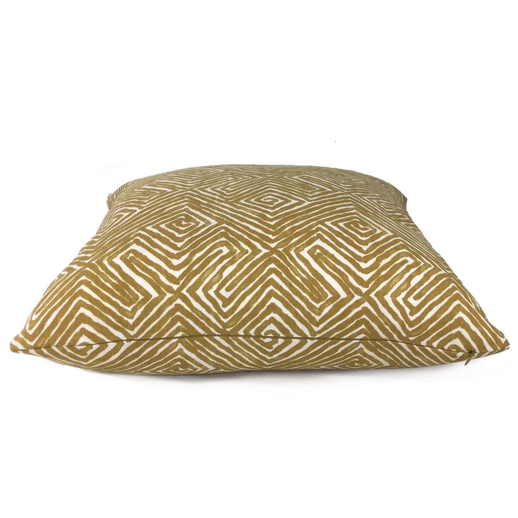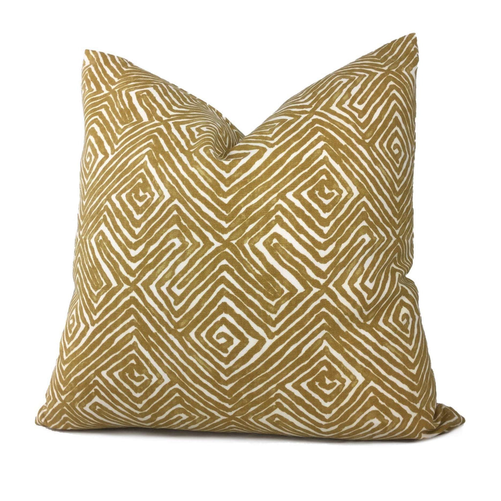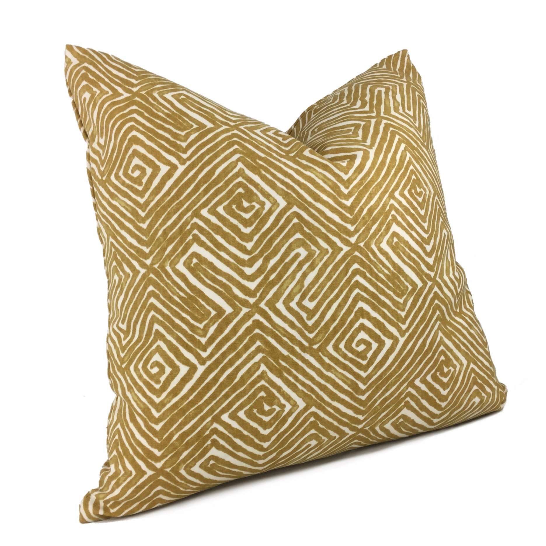 Nate Berkus designer pattern fabric is used on front side with coordinating solid gold backside on last remaining pillow covers as listed. Photographed on 19x19 cover (filled with 20x20 insert).