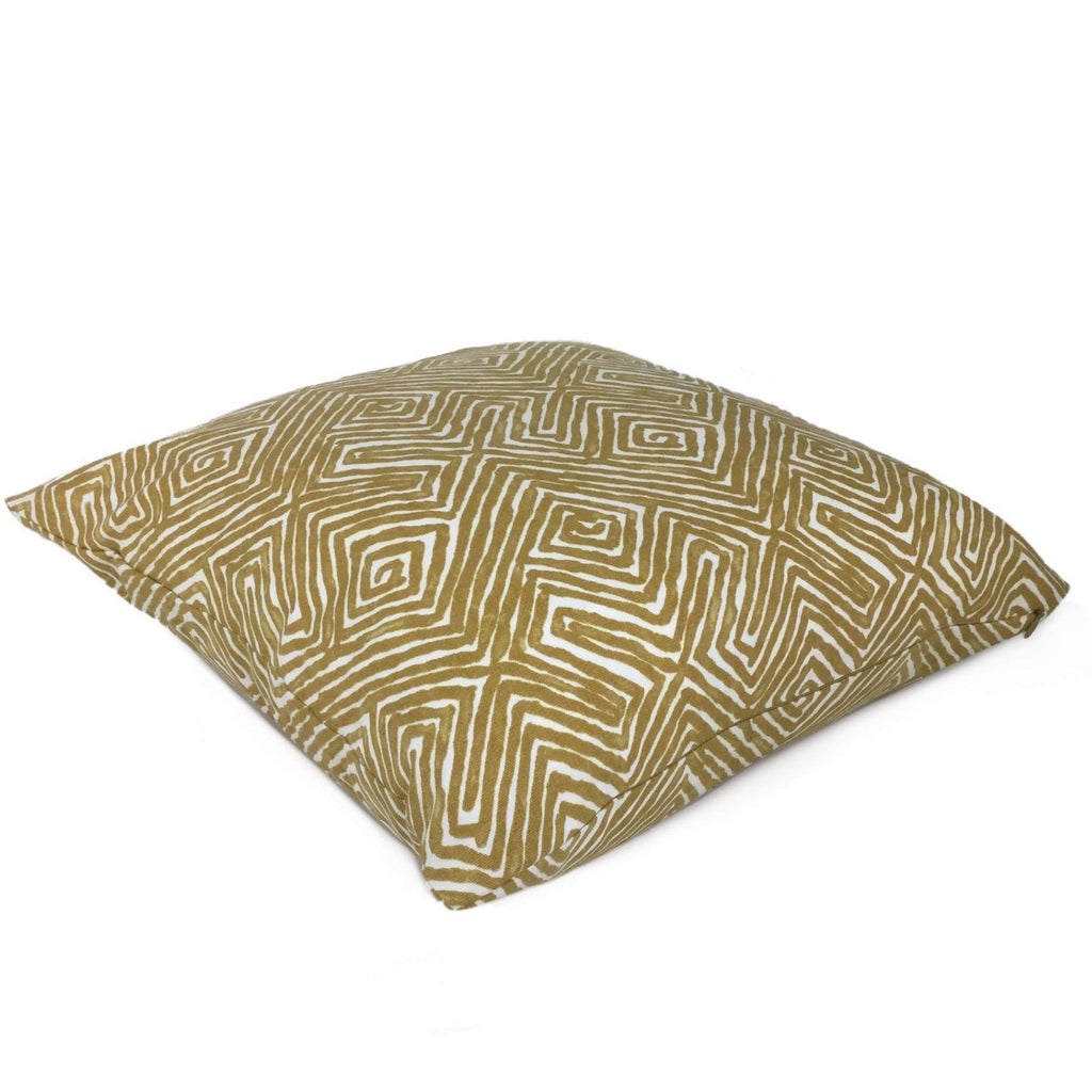 Almost sold out! This tribal maze pillow cover is printed in ochre yellow on a creamy white background.