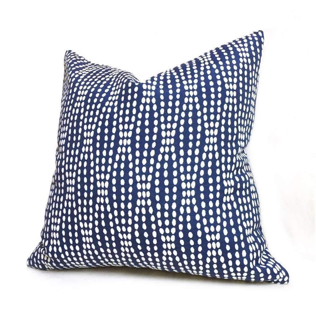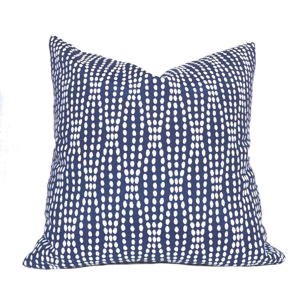 Navy Blue White Abstract Pearl Strands Pillow Cover