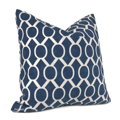 (CLEARANCE) Benton Navy Blue White Circles on Diamonds Modern Pillow Cover