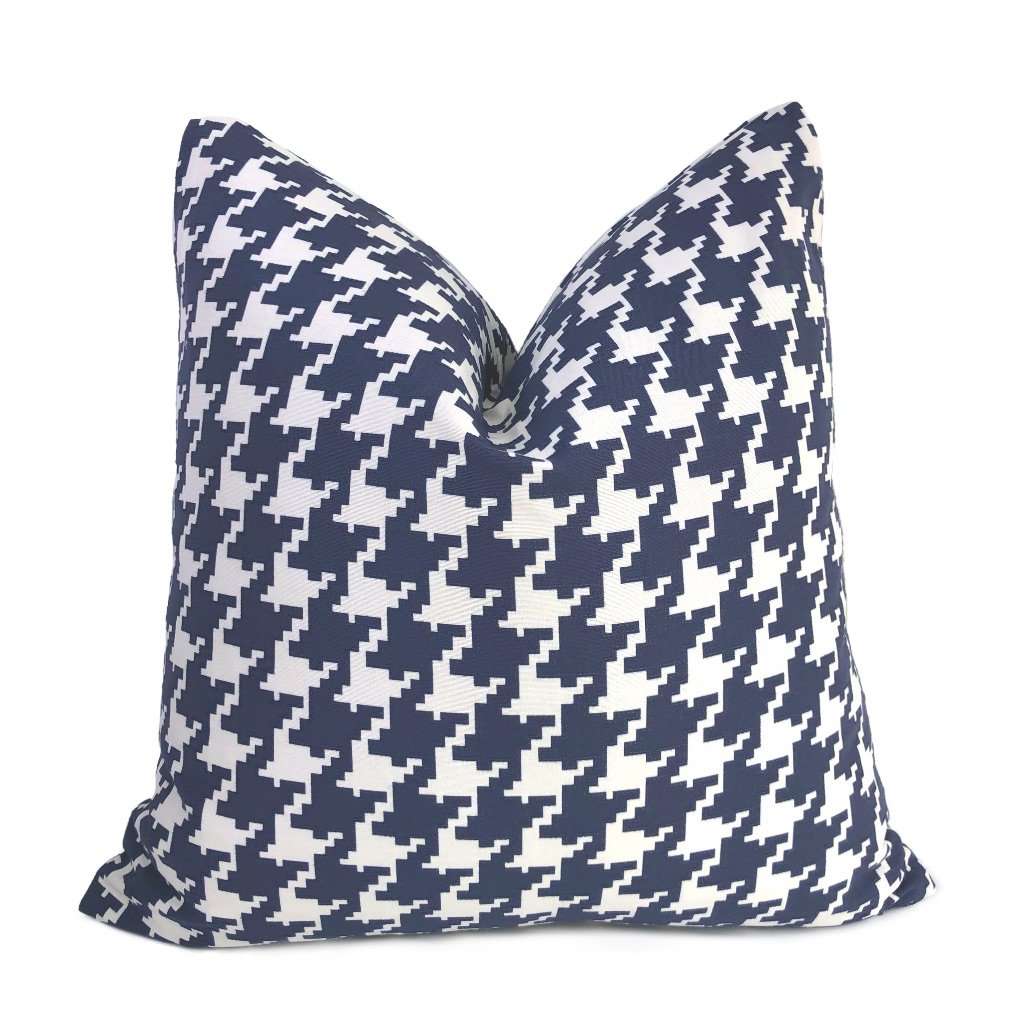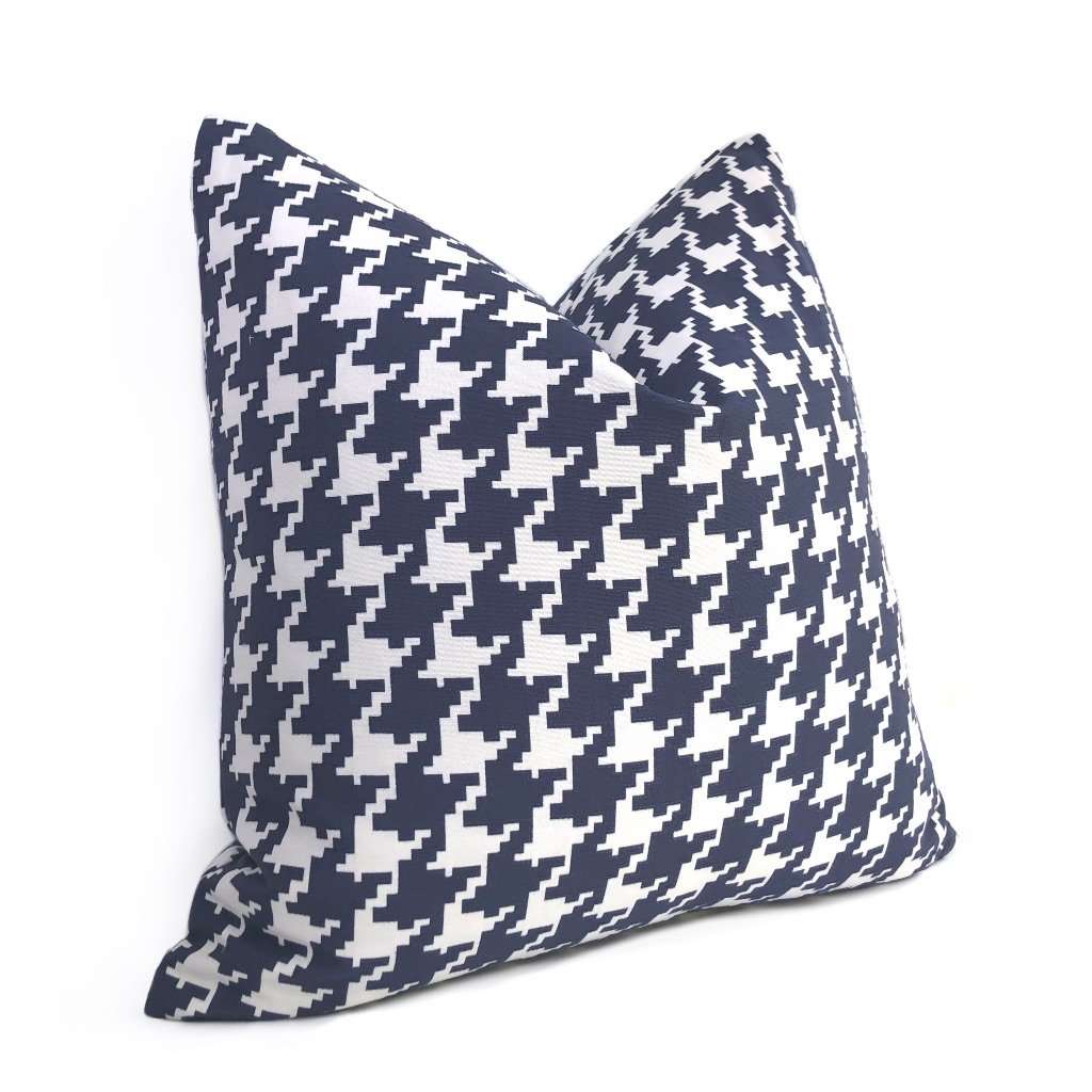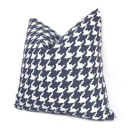 The classic houndstooth woven pattern make this navy and white colored pillow cover a great piece to set off other patterns.