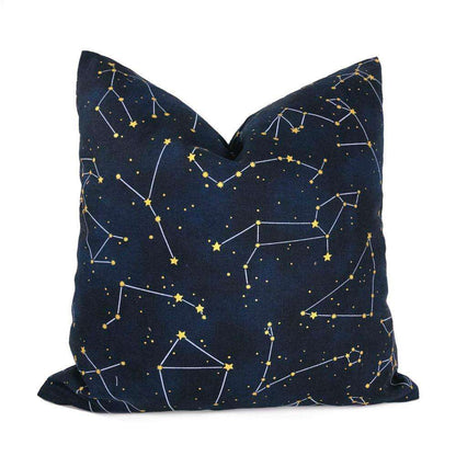 (CLEARANCE) Night Sky Stars and Constellations Navy Blue Gold Cotton Print Pillow Cover