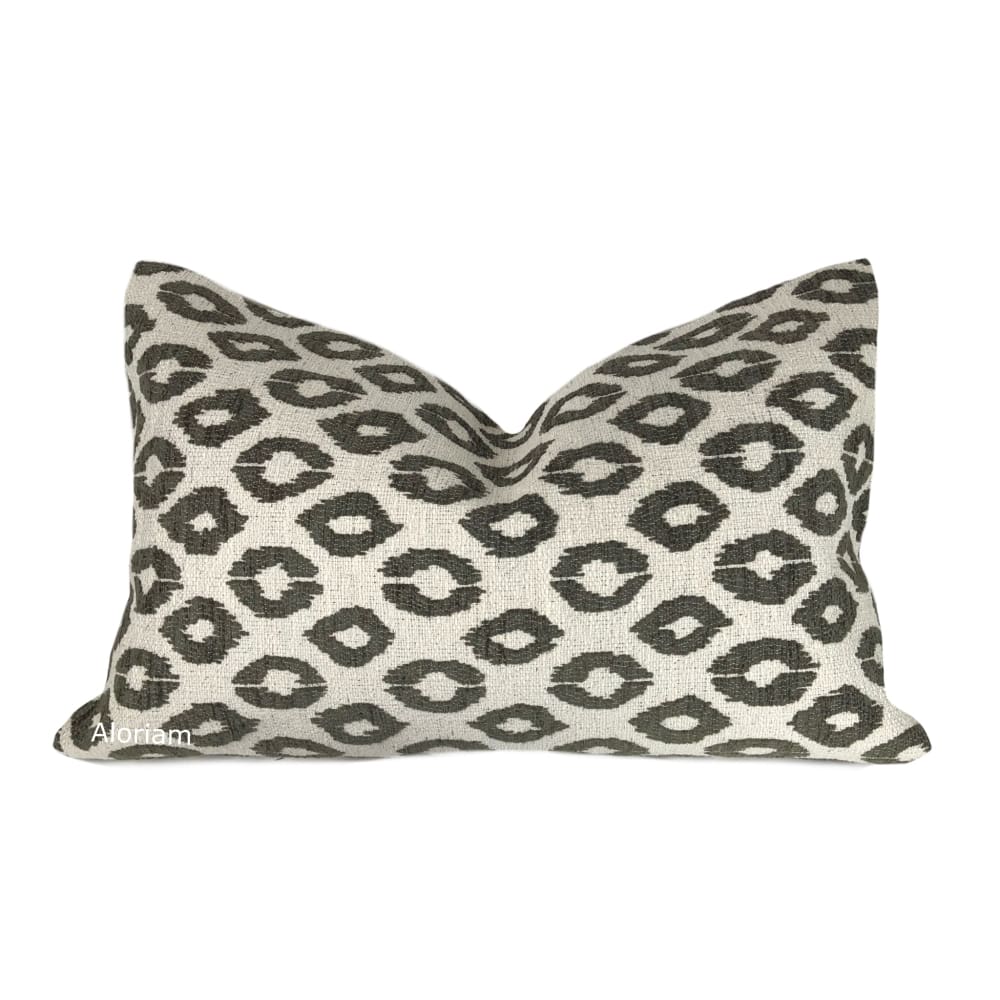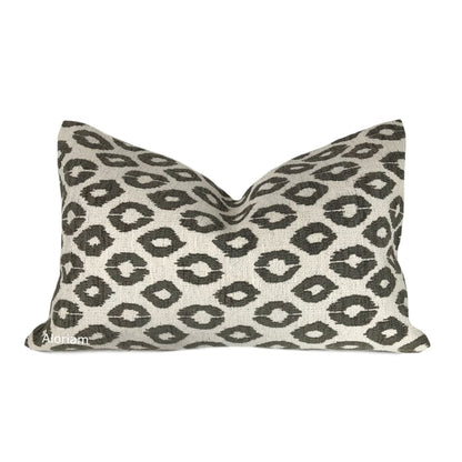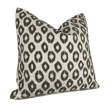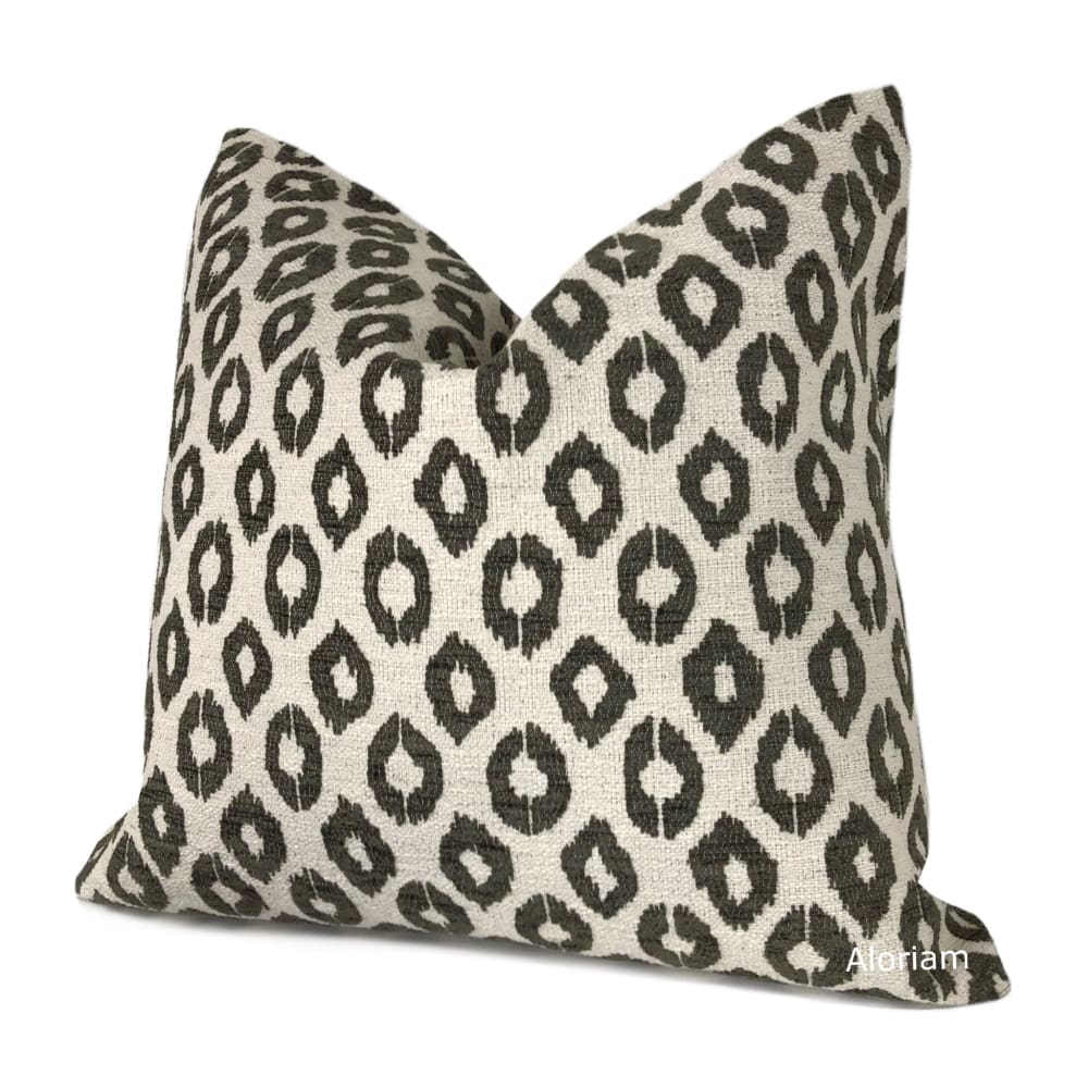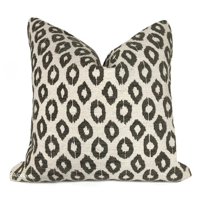 The Nola pillow cover features a modernized animal spot pattern woven in a deep espresso brown on a creamy natural background.