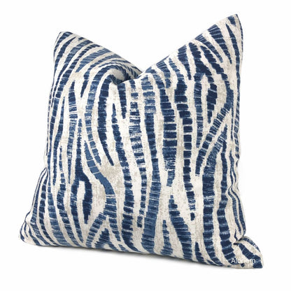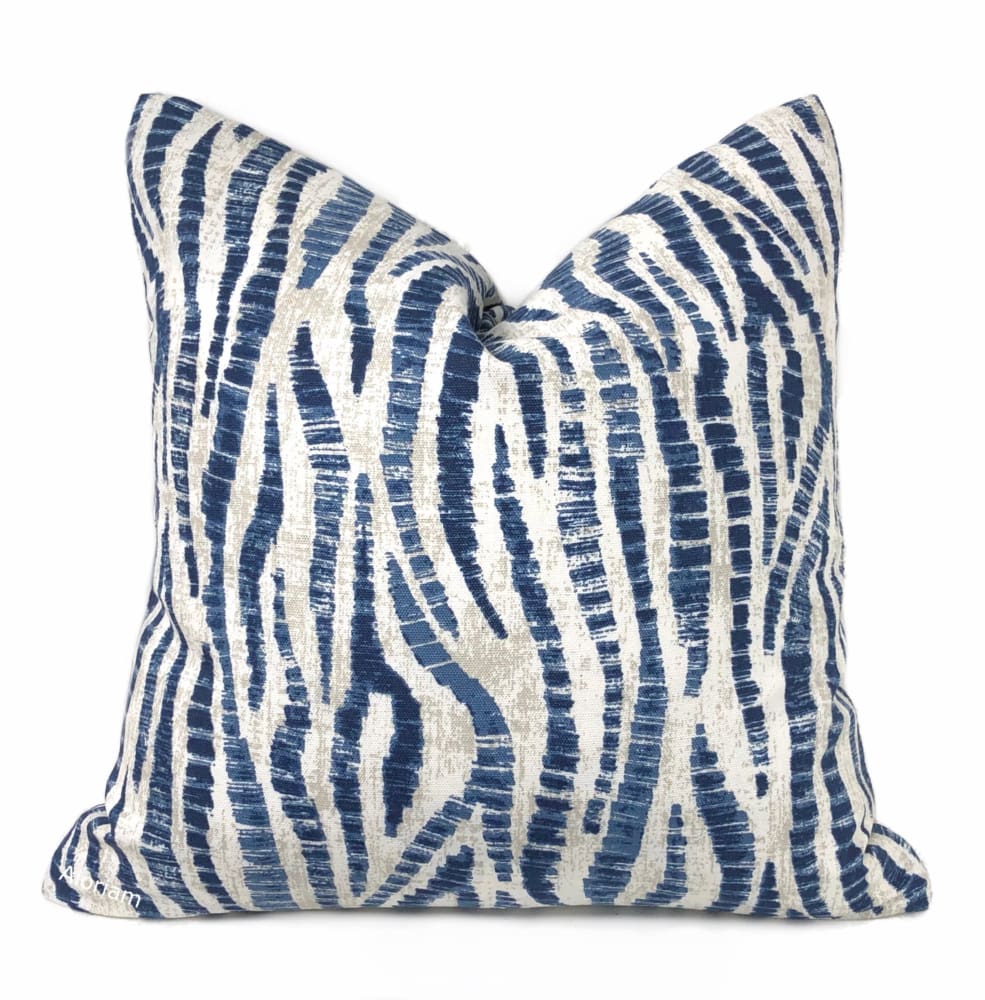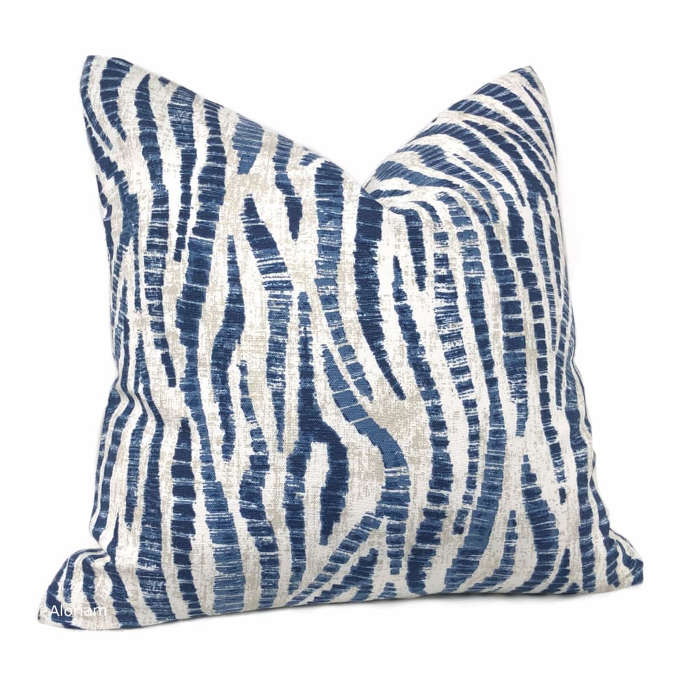 Omar Blue Ecru Animal Stripe Pillow Cover