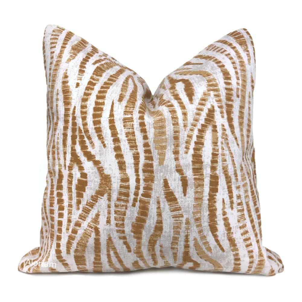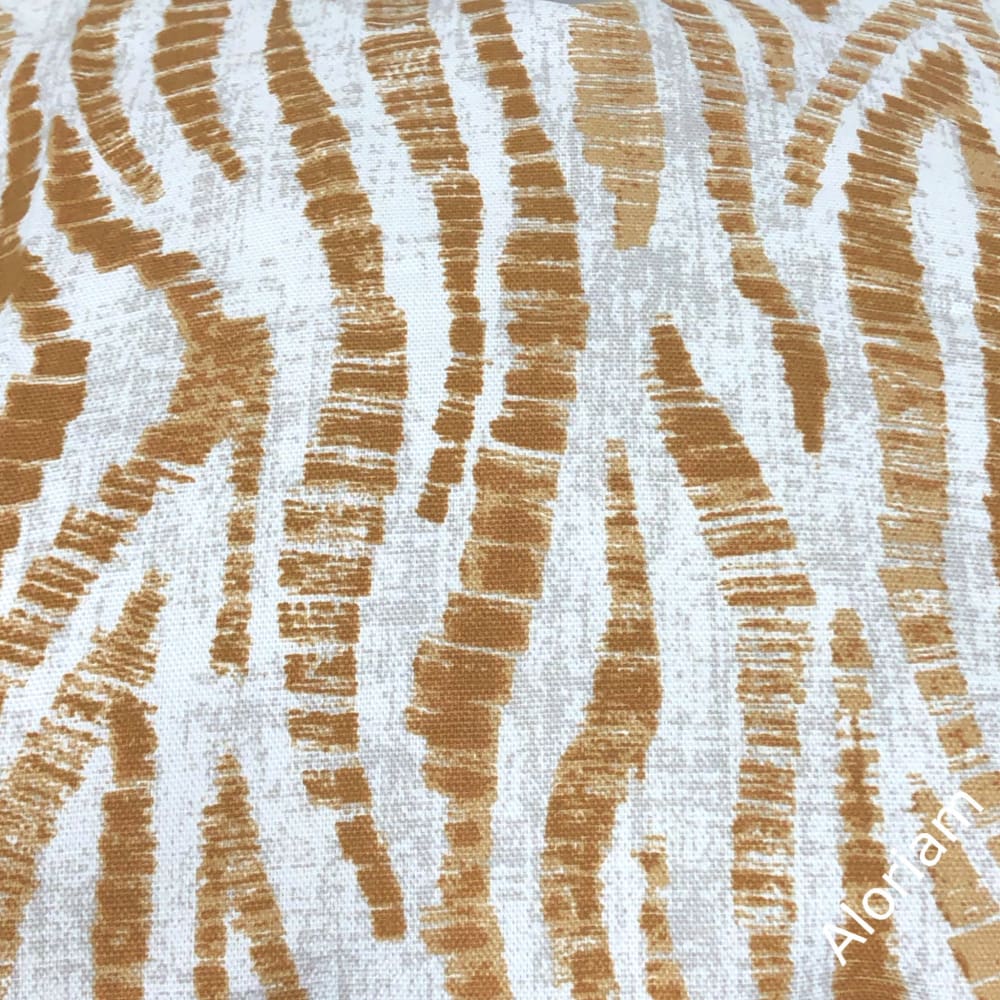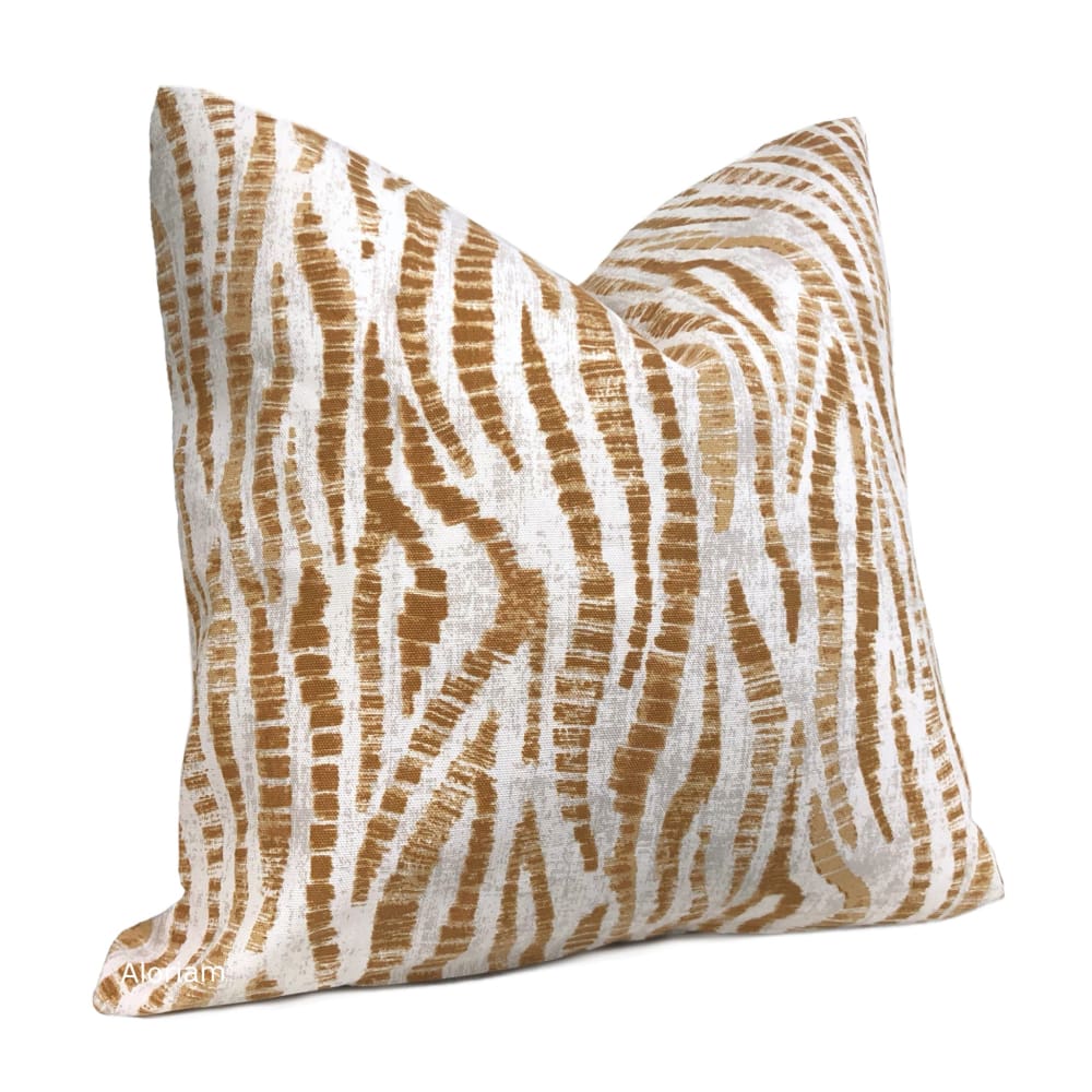 Omar is a cotton print pillow cover featuring a stylized animal stripe design in ochre brown.