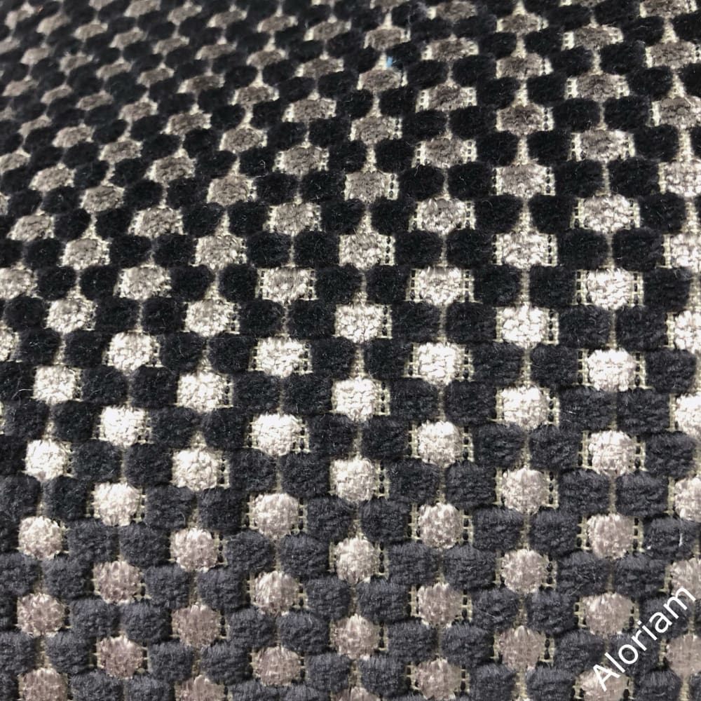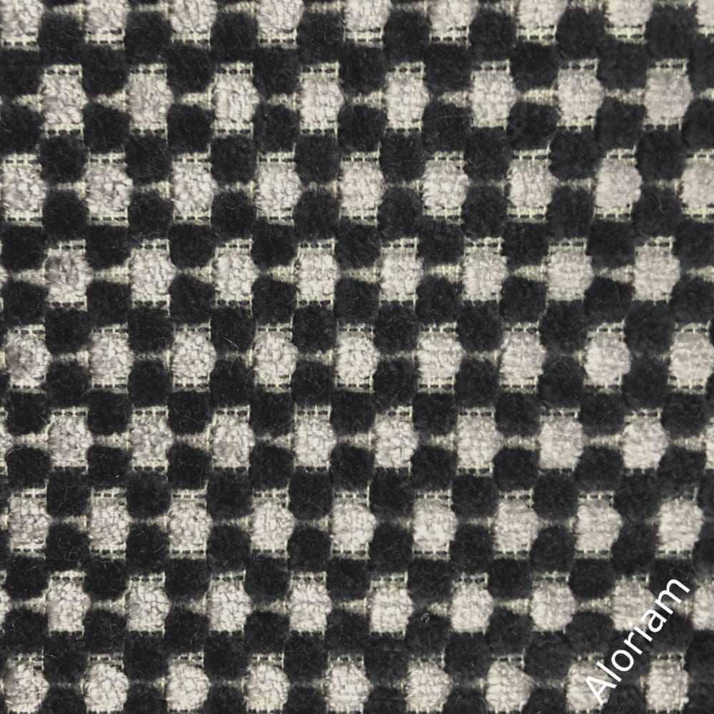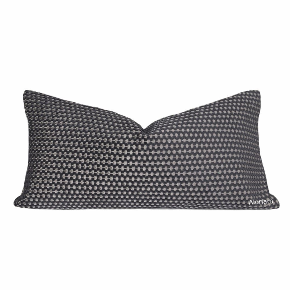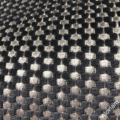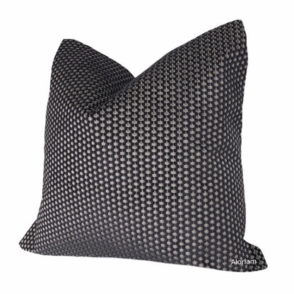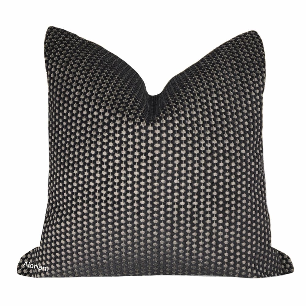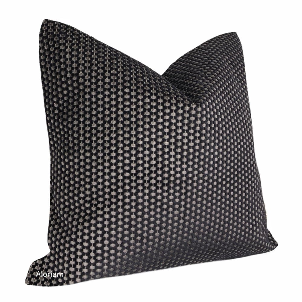 Oscat is a velvet pillow cover woven with a small scale dotted pattern in black and gray.
