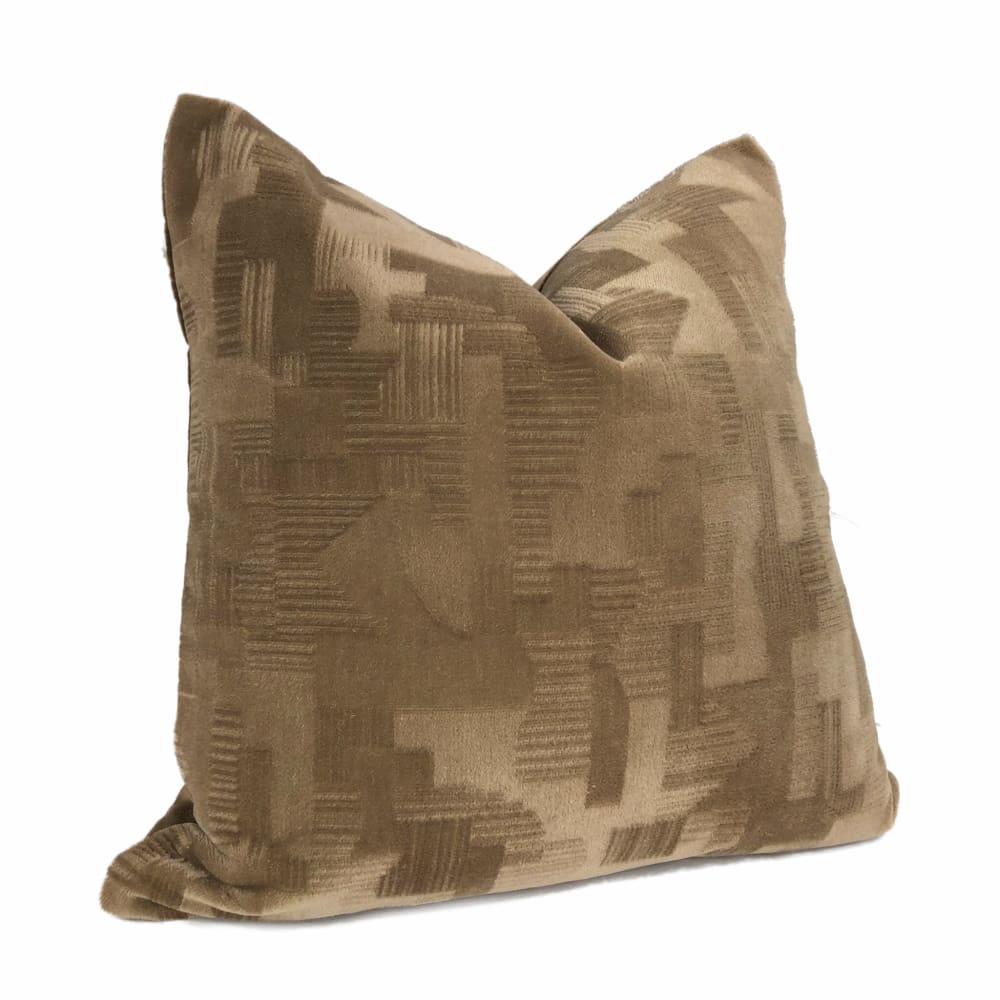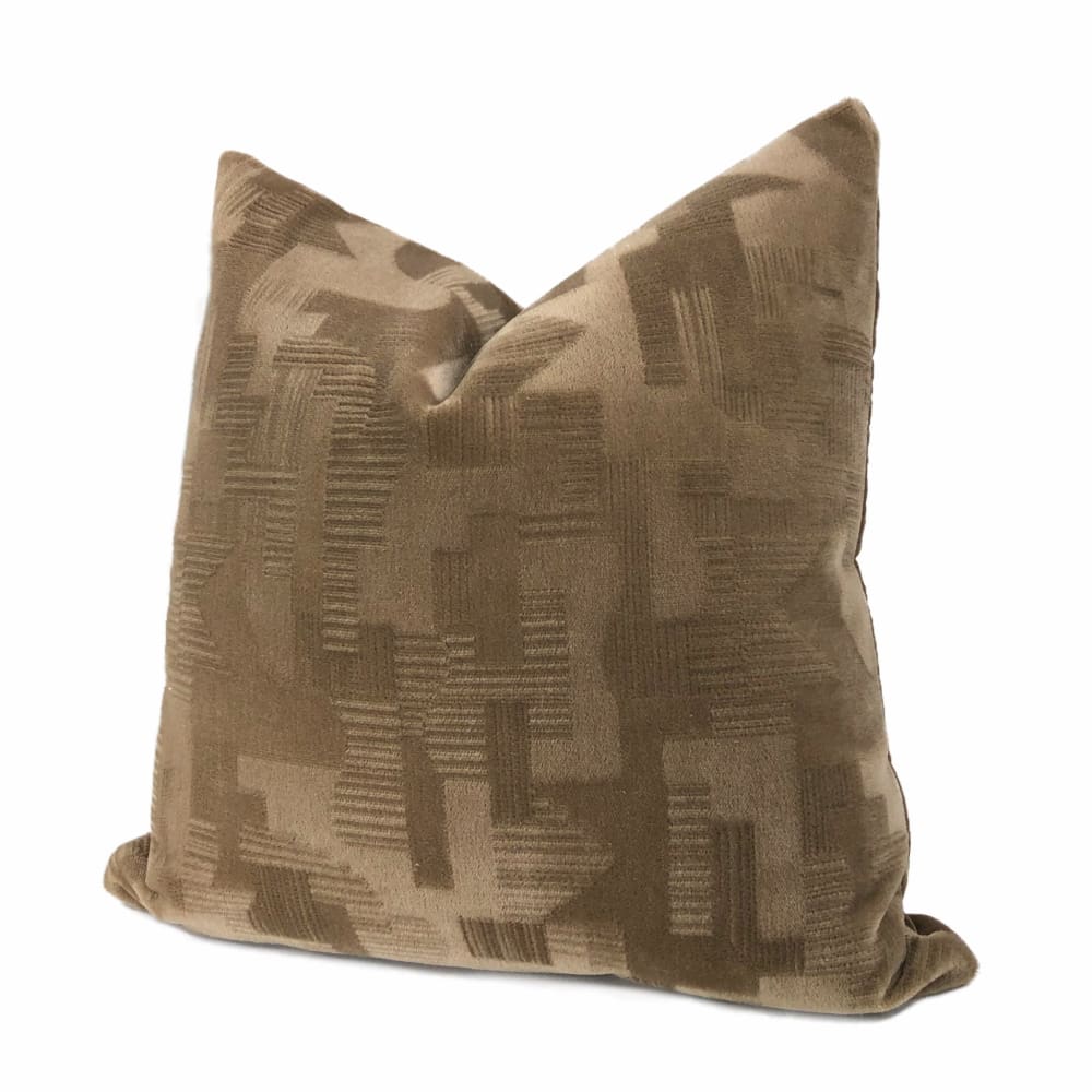 Oslow Mid-Century Modern Brown Mohair Velvet Pillow Cover (Brunschwig & Fils Fabric)