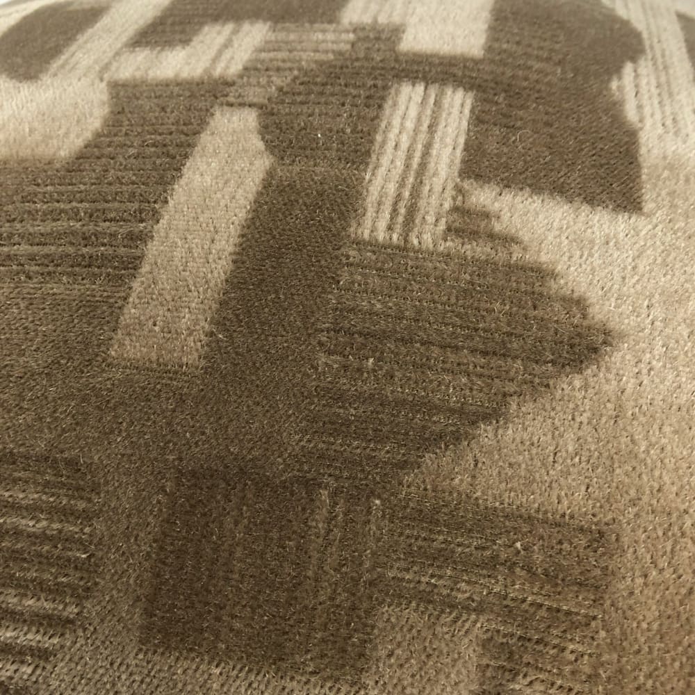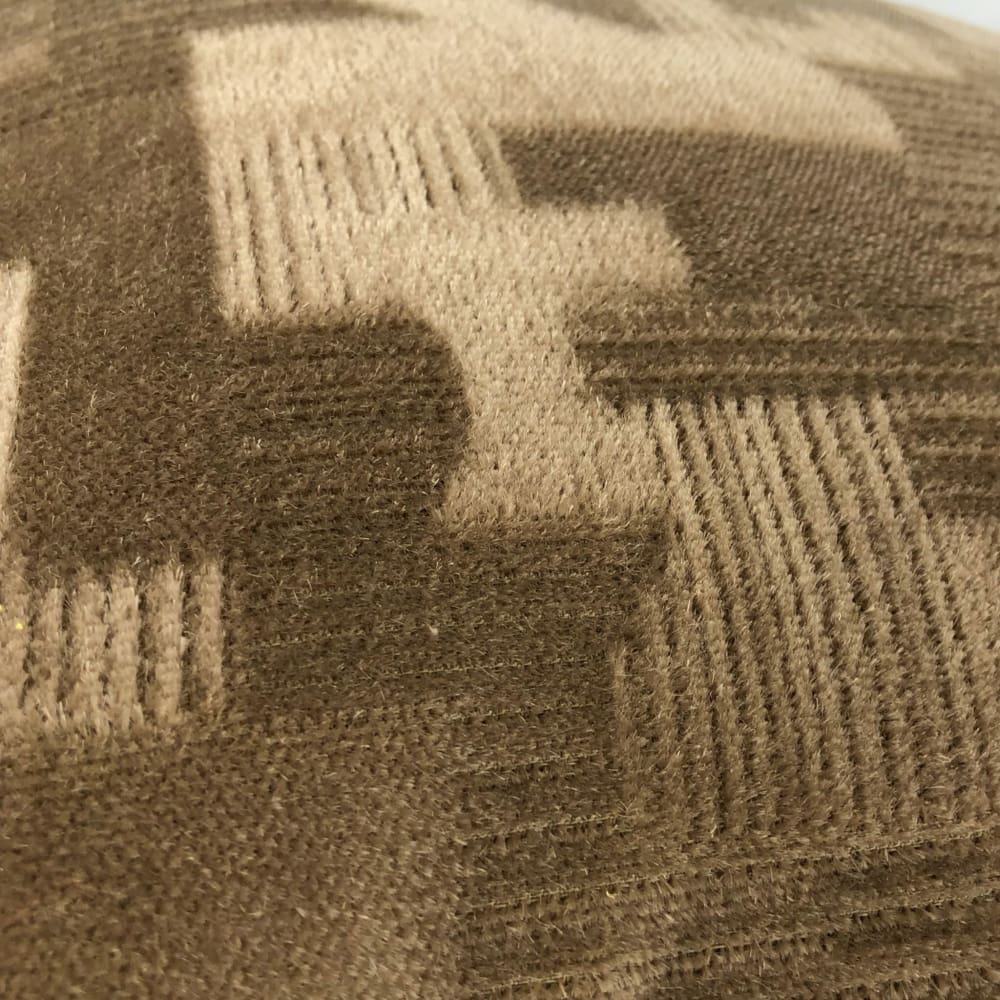 Designer fabric fiber content: 100% Mohair Pile with cotton backing (overall 49% mohair 51% cotton). Each Oslow pillow cover can be made in your choice of the pattern fabric on both sides or with a matching solid brown velvet backside (backside may differ from pictured depending on current available inventory).