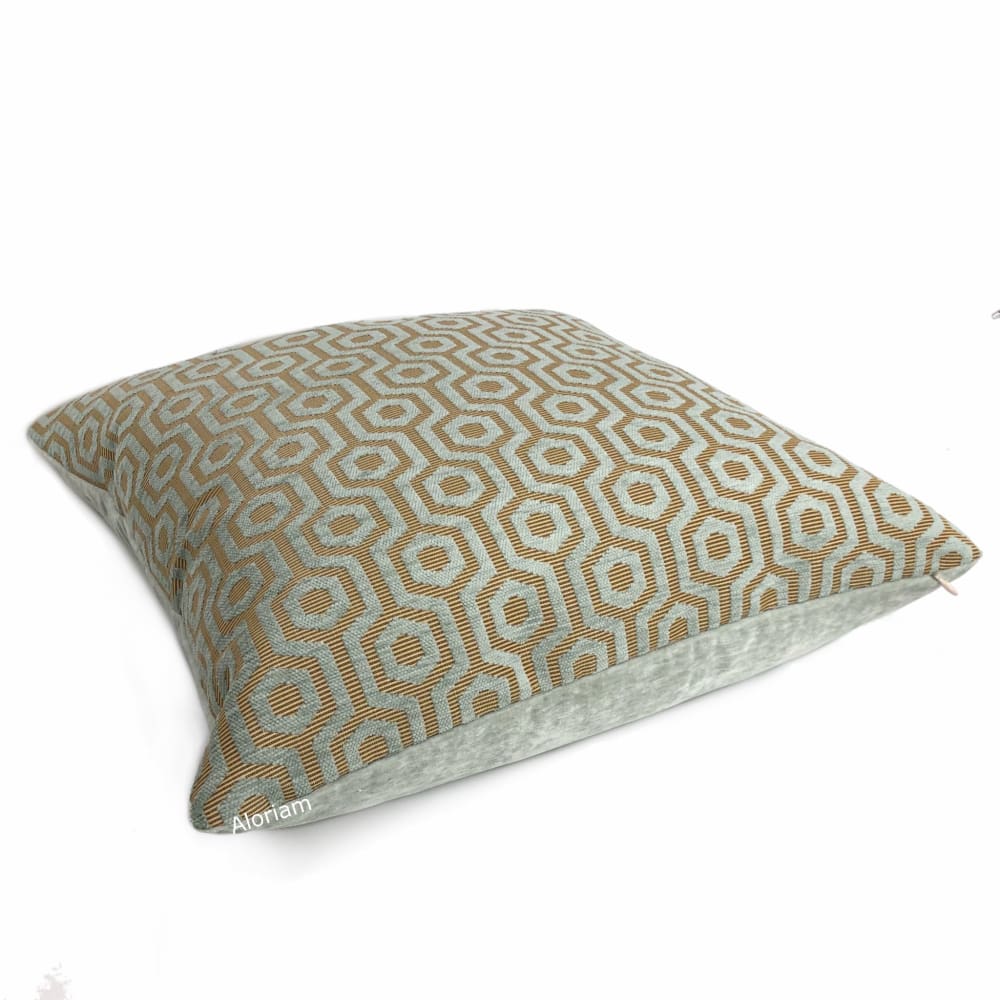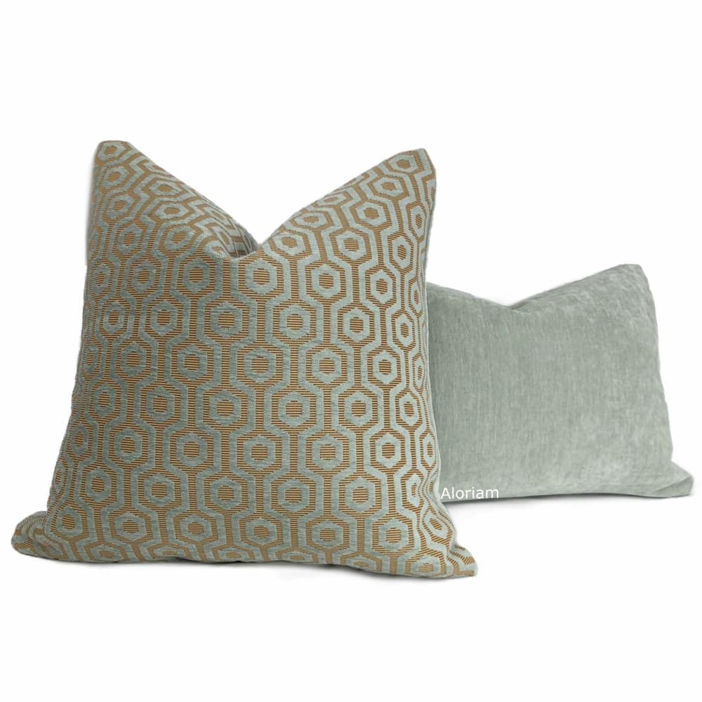 Pascal is a seafoam green chenille pillow cover with a honeycomb lattice design.