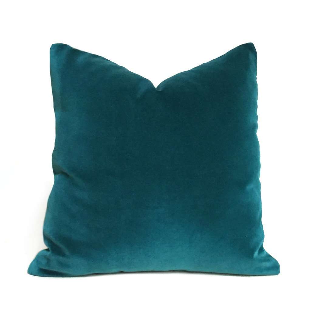 Almost sold out! Sewn in a sumptuous peacock teal blue-green velvet fabric with a soft matte texture, this pillow cover will breathe new life into your decor! Robert Allen markets this lush cotton velvet under the name Exquisite.