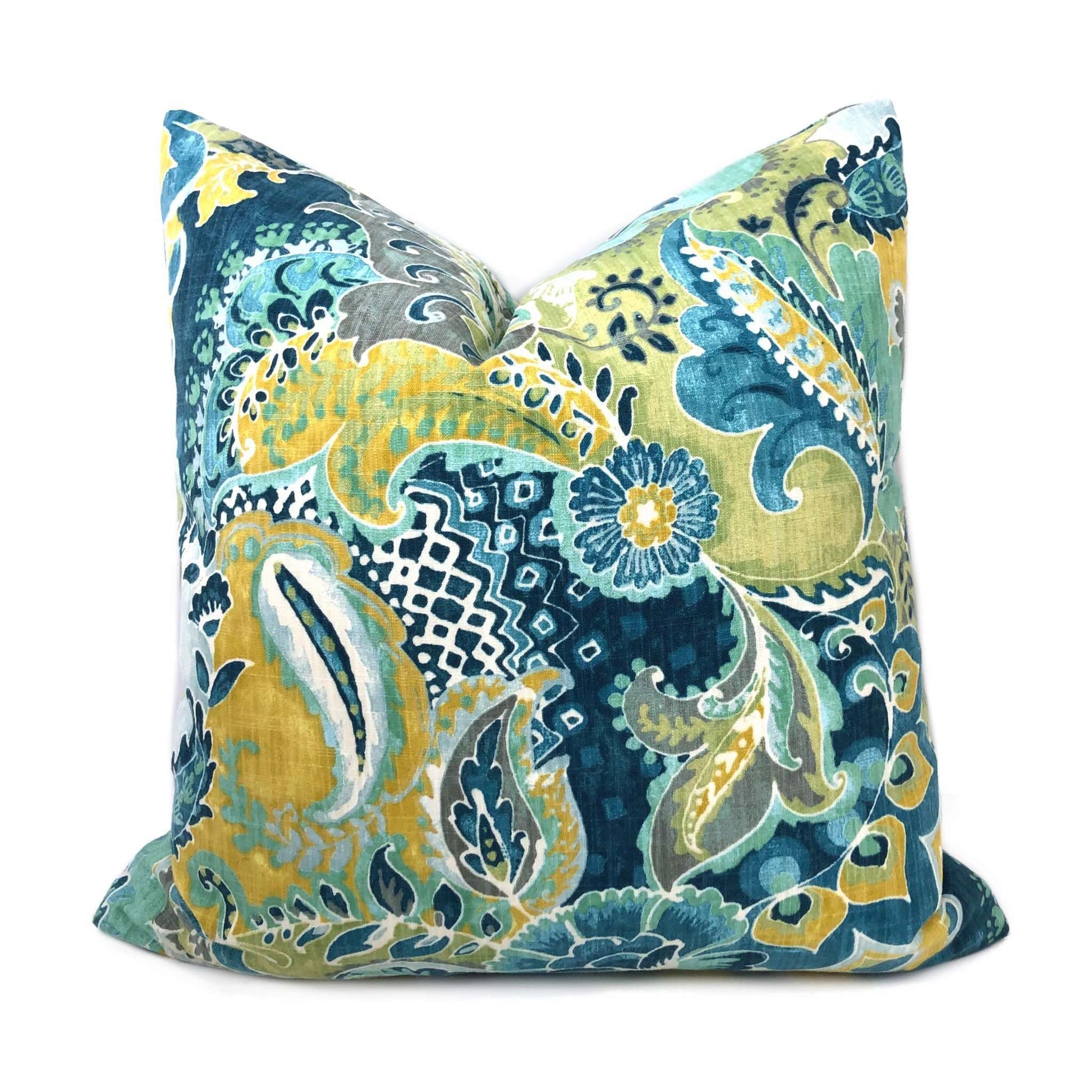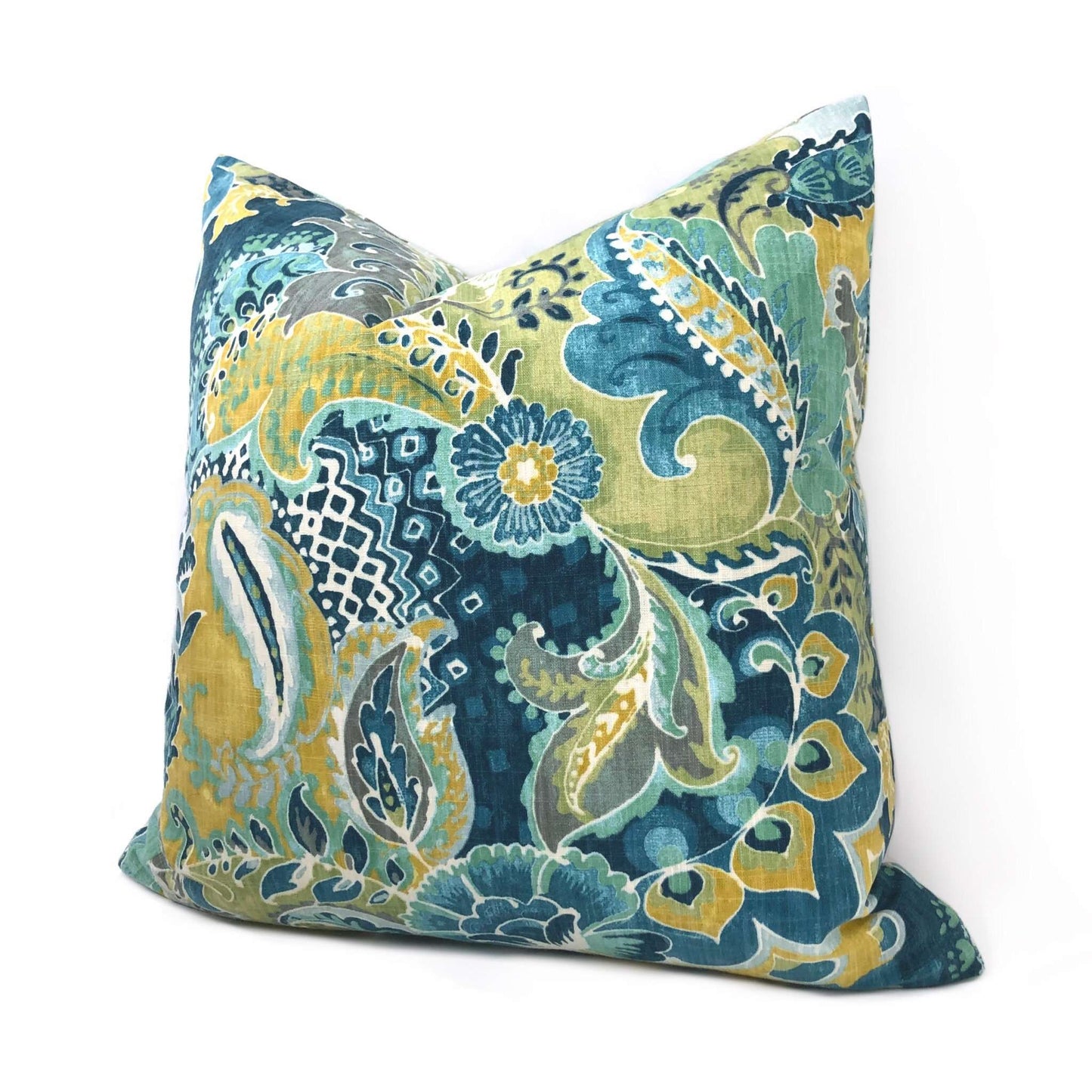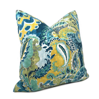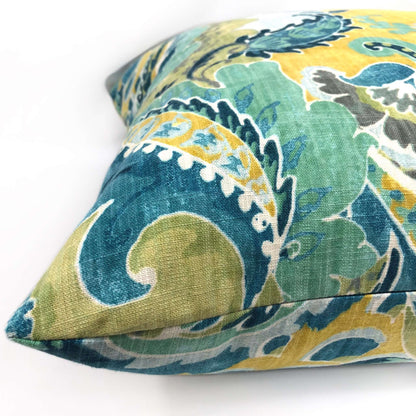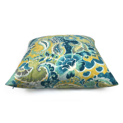 (CLEARANCE) Persephone II Teal Green Yellow Floral Pillow Cover