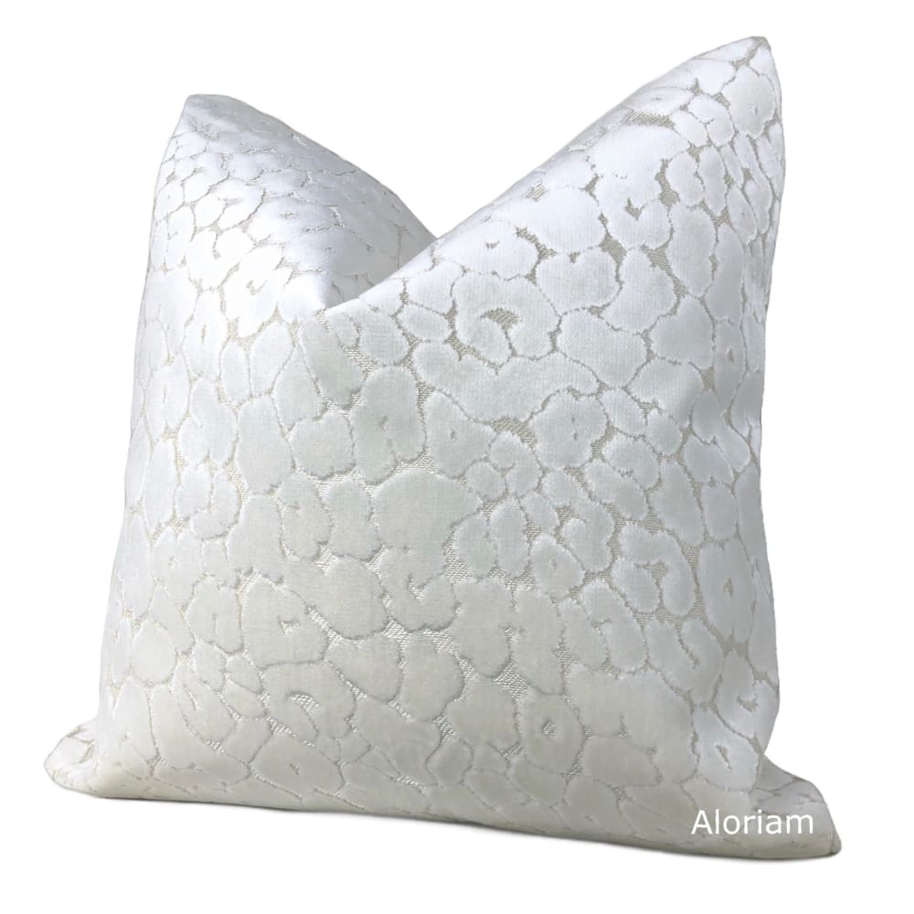 Phoebe is a leopard spot pillow cover woven in snow white velvet. Soft and luxurious, this is one leopard print pillow you want to have in your home. Phoebe is classy, sophisticated and comes in several lovely colors!