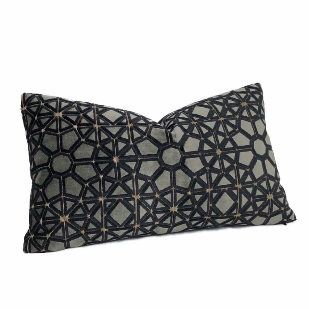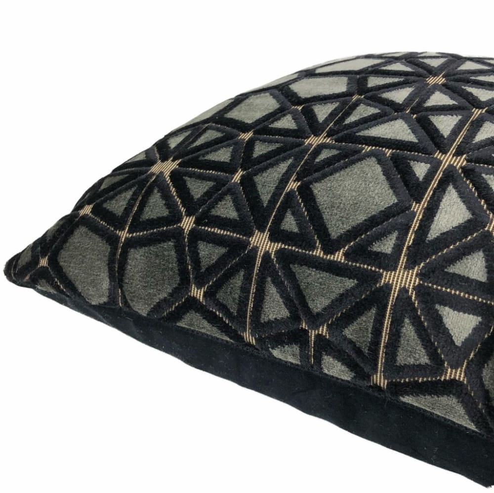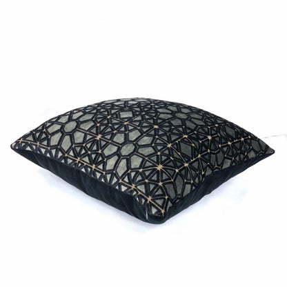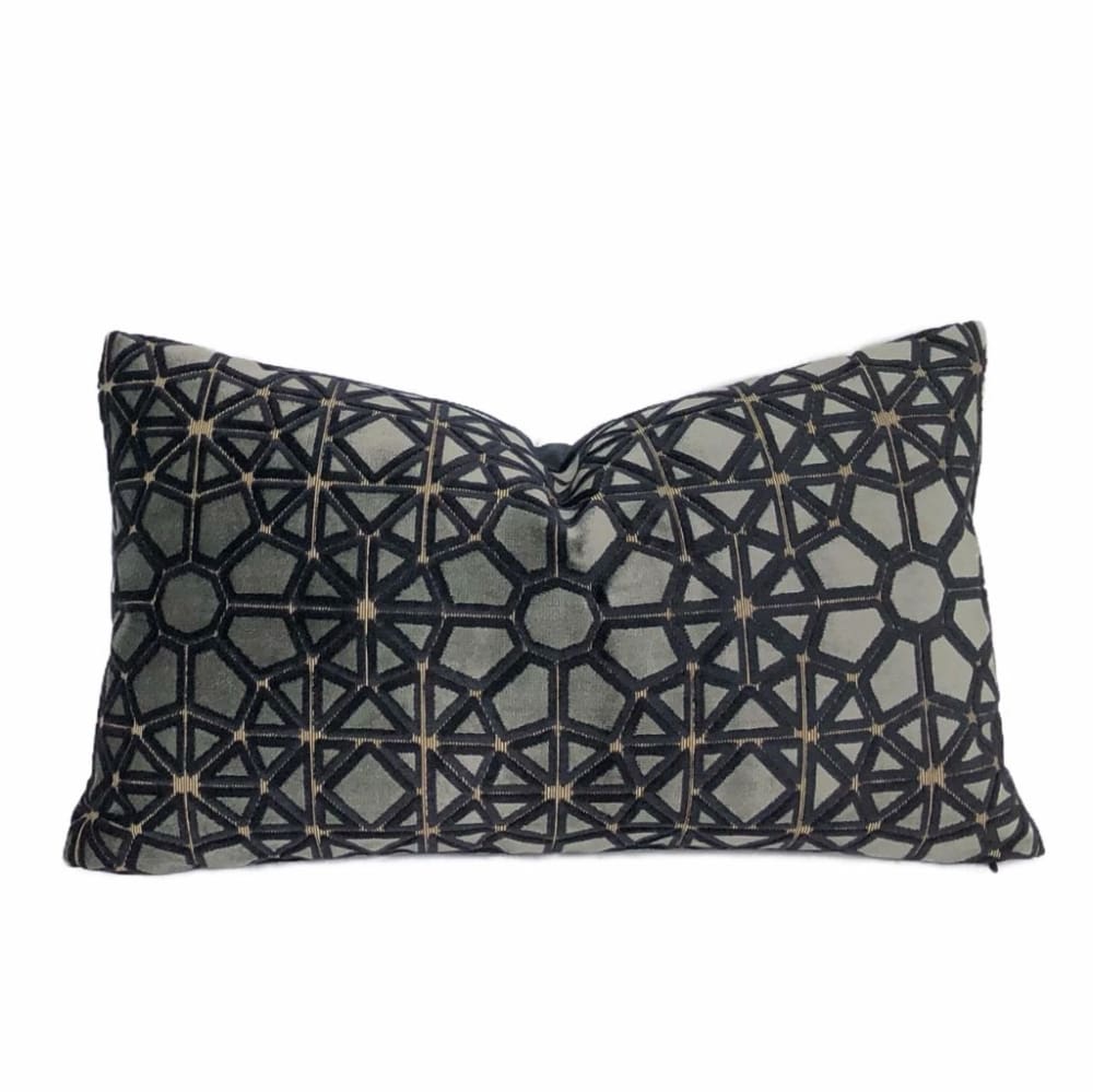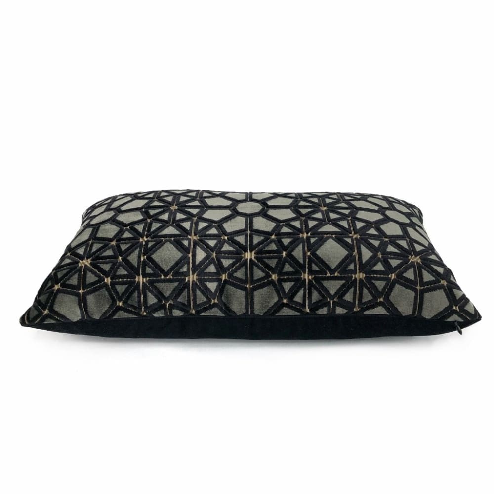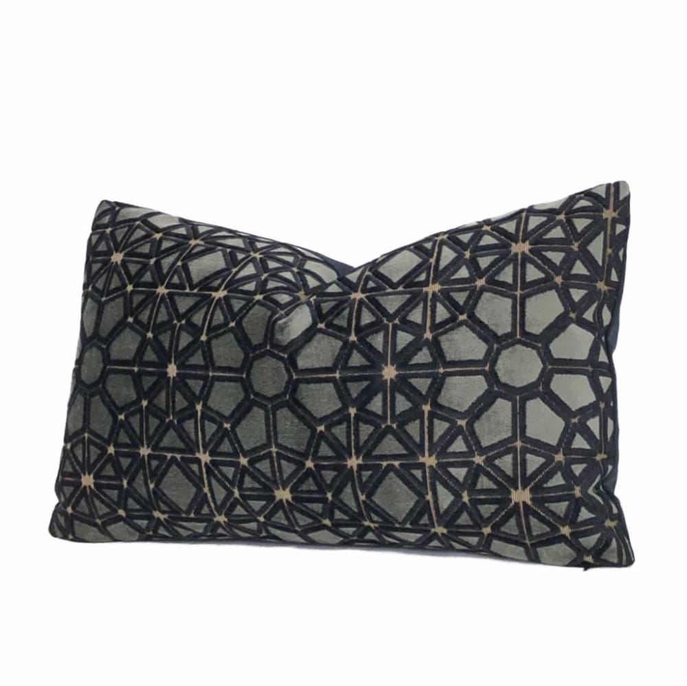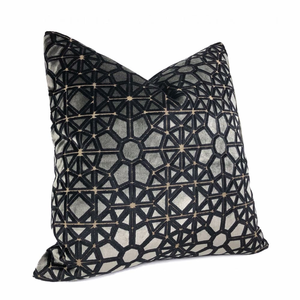 Last one! Woven in black and gray, the Crosscut velvet pillow cover features a stunning Moorish tile inspired design.