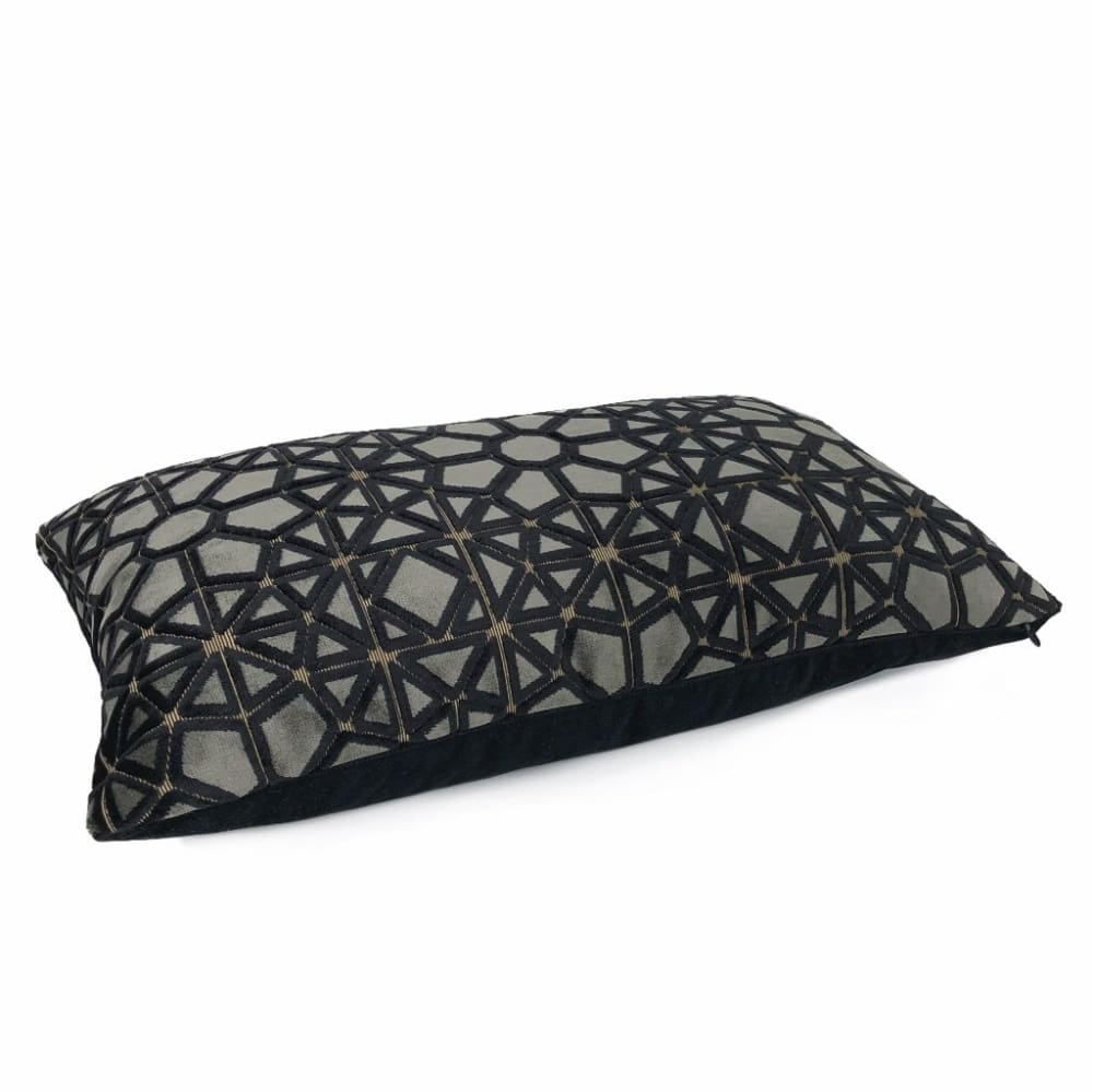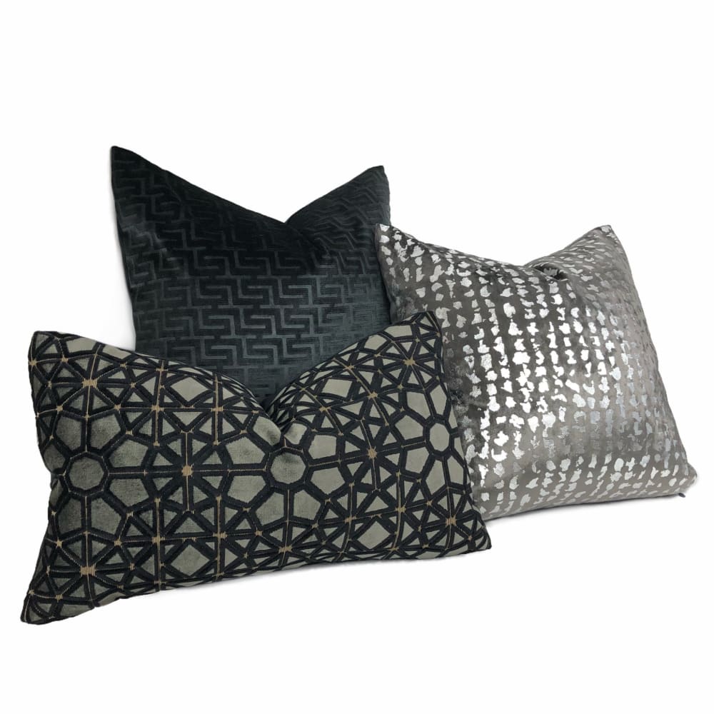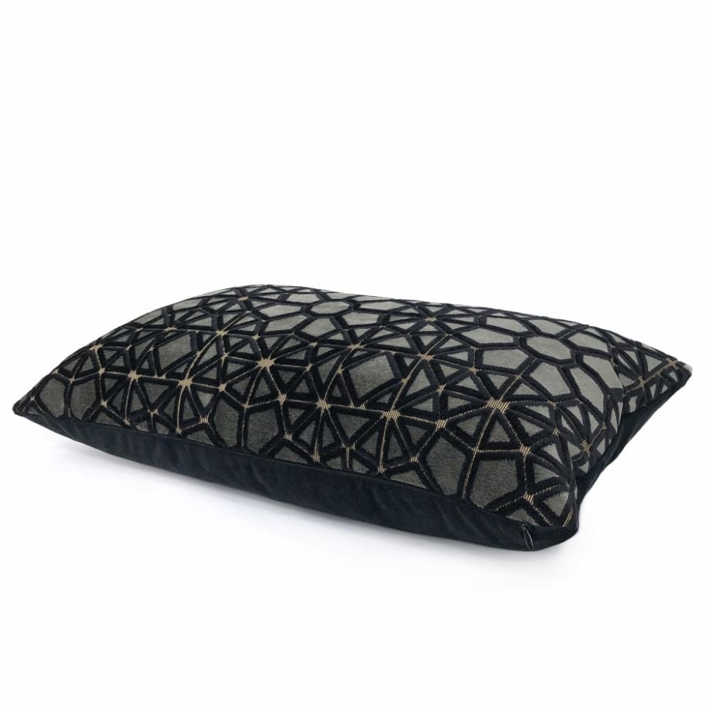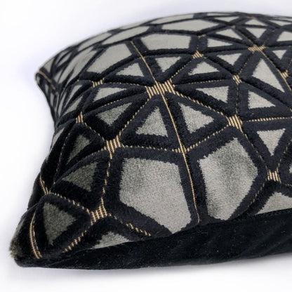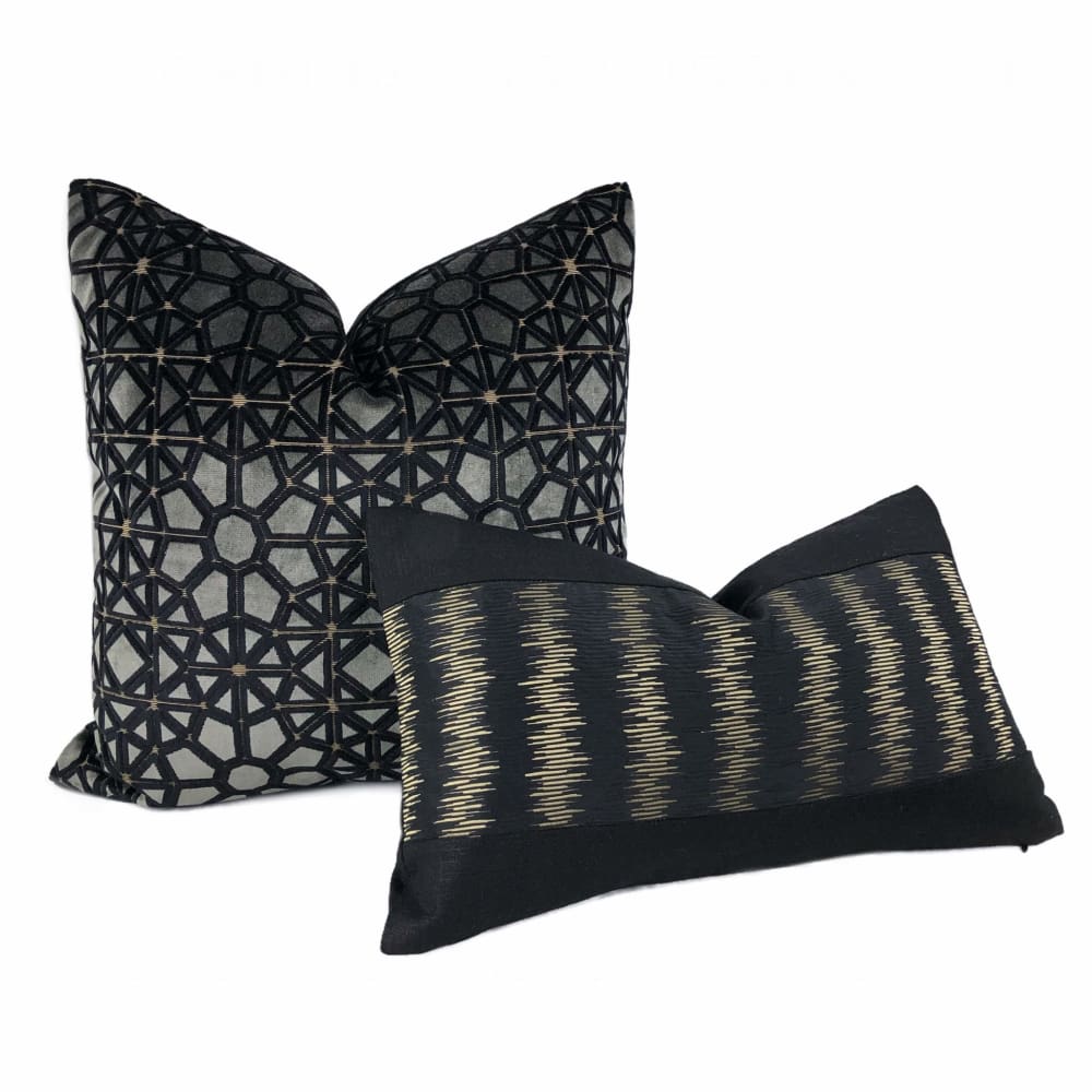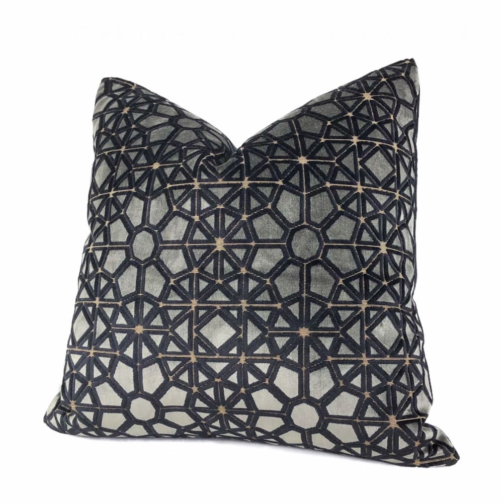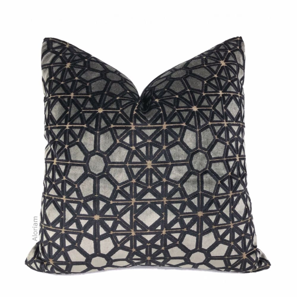 Last one! Woven in black and gray, the Crosscut velvet pillow cover features a stunning Moorish tile inspired design.
