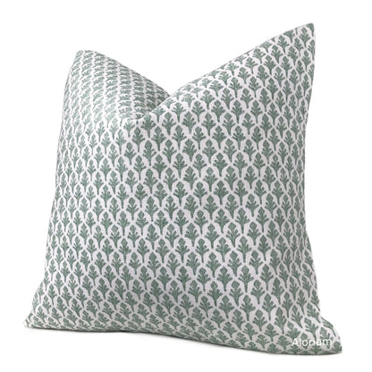 Ponce Eucalyptus Green White Leaf Print Pillow Cover (Lacefield Designs fabric available by the yard)