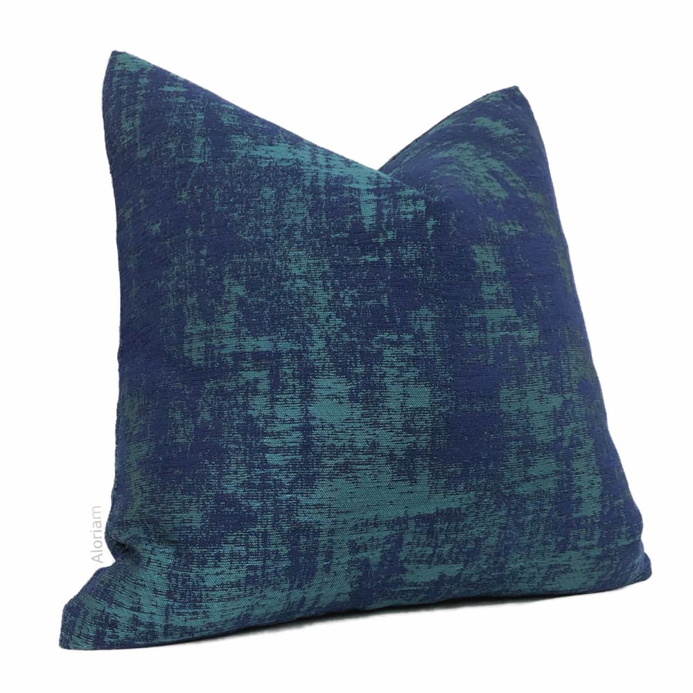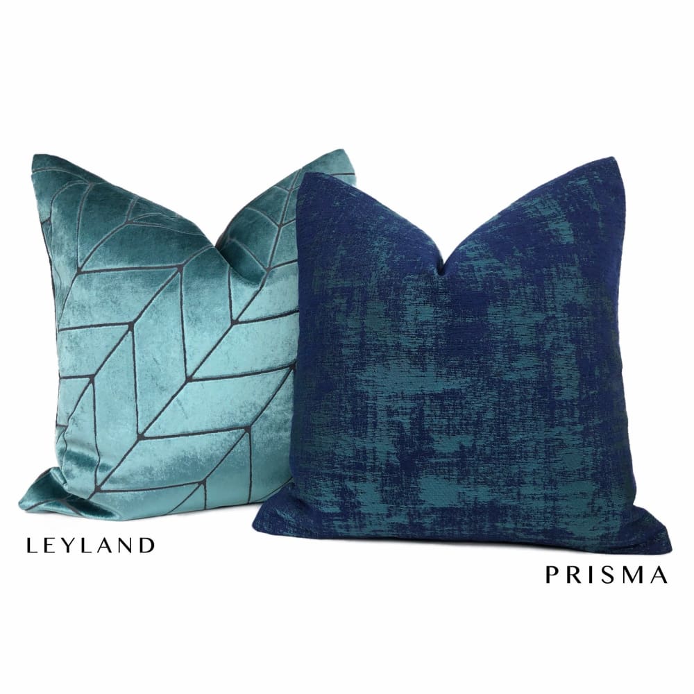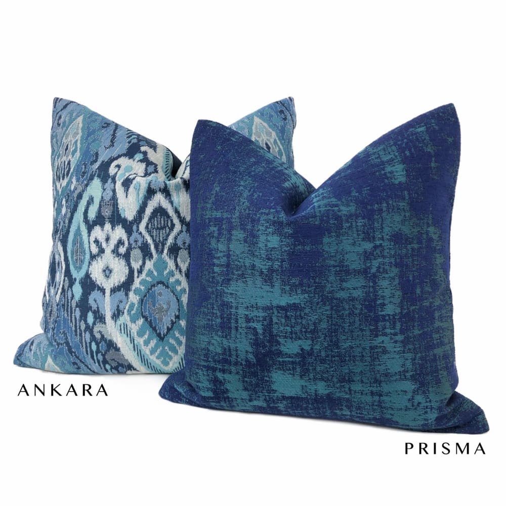 Prisma is a modern texture pillow cover woven in aqua and ultramarine blue.