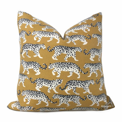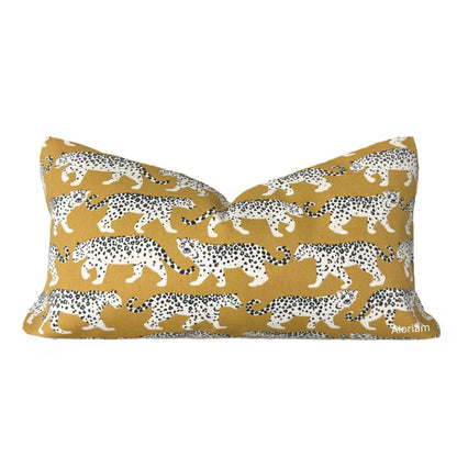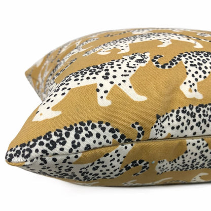 Prowling Leopards Camel Beige Cotton Print Pillow Cover