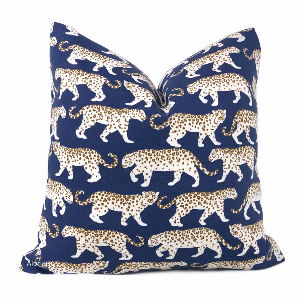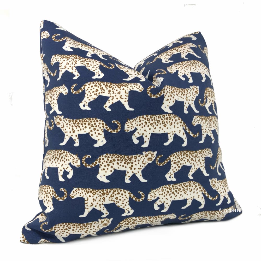 (CLEARANCE) Prowling Leopards Navy Blue Indoor Outdoor Pillow Cover