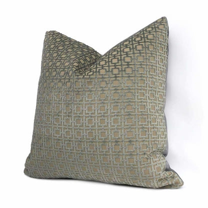 Quattro Storm Gray Geometric Square Lattice Cut Velvet Pillow Cover