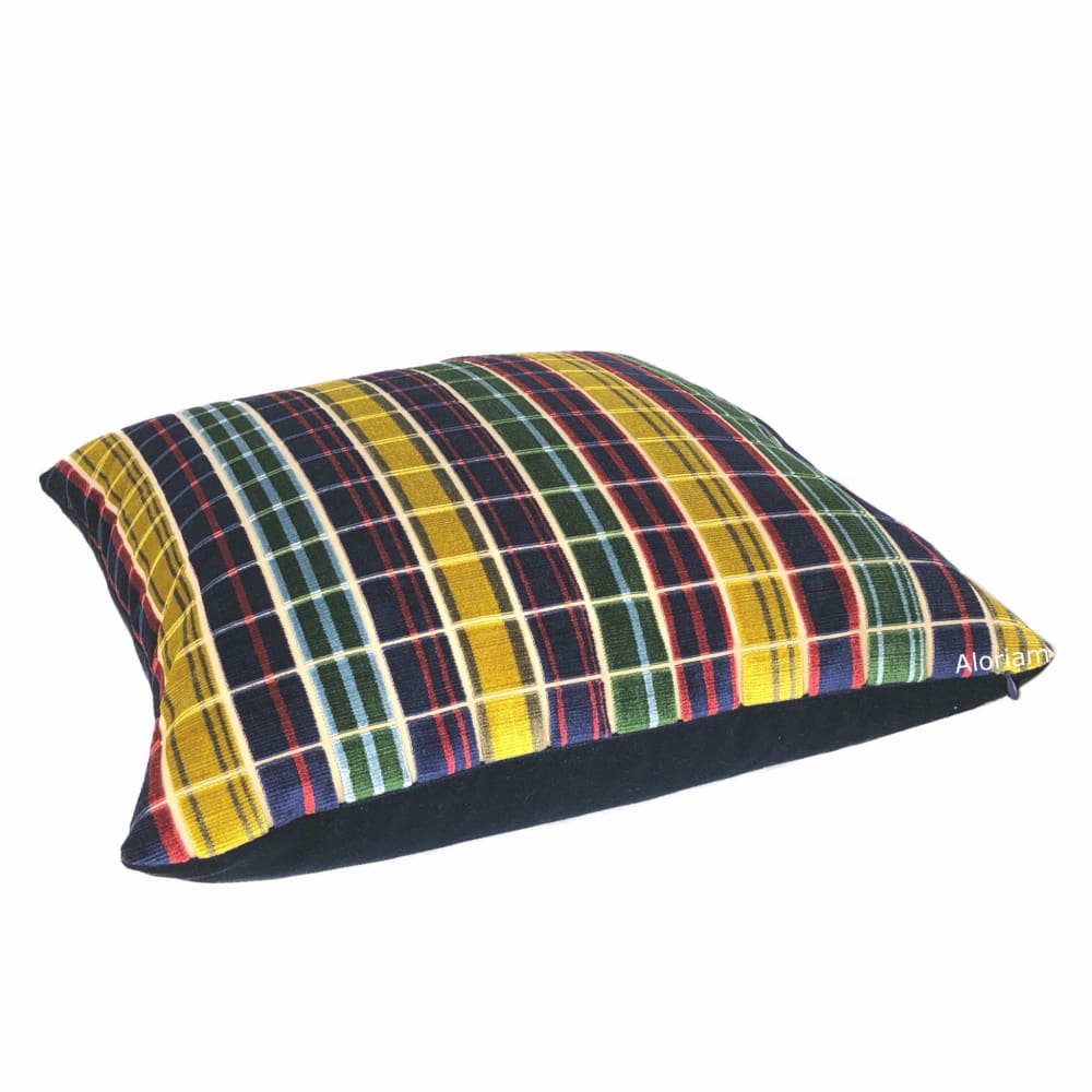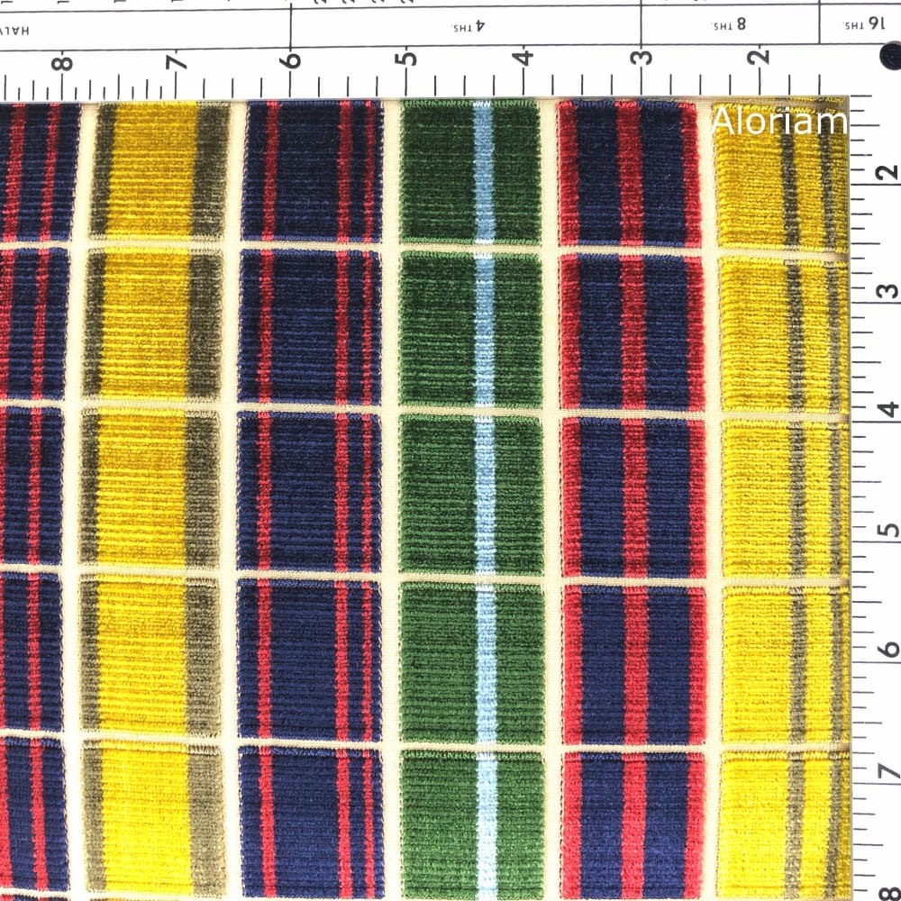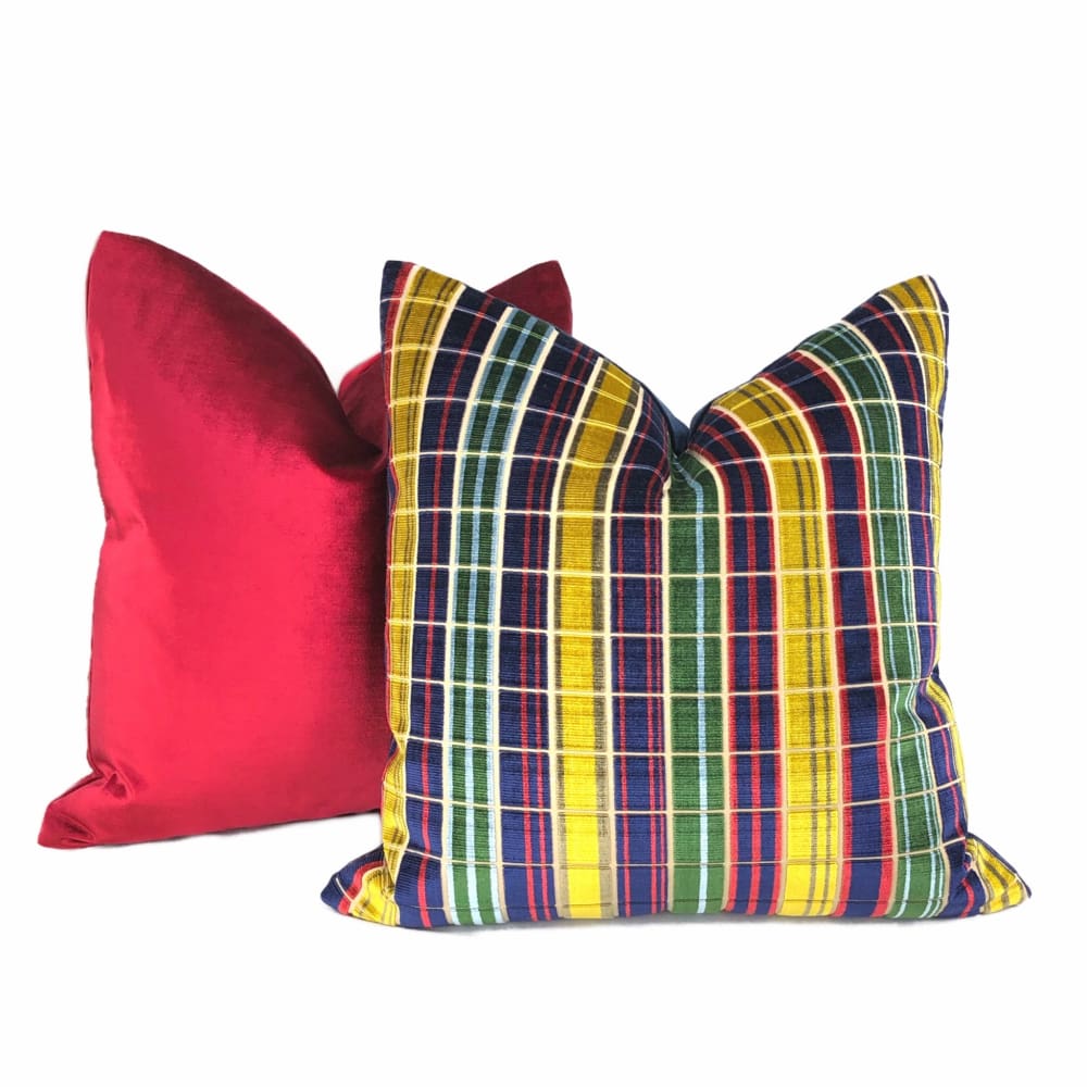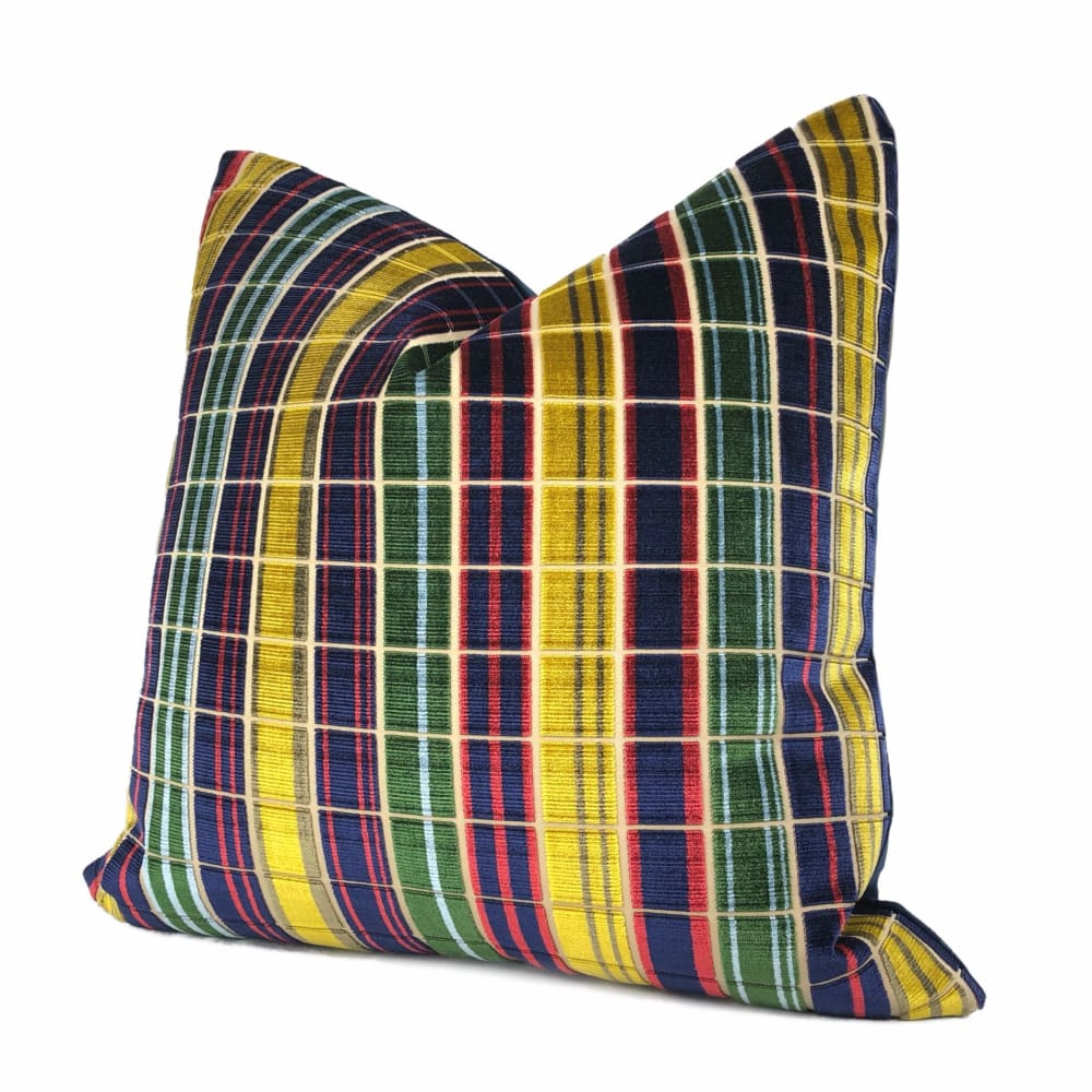 Regent's Park Navy Blue Red Gold Plaid Silk Velvet Pillow Cover (Lee Jofa fabric)