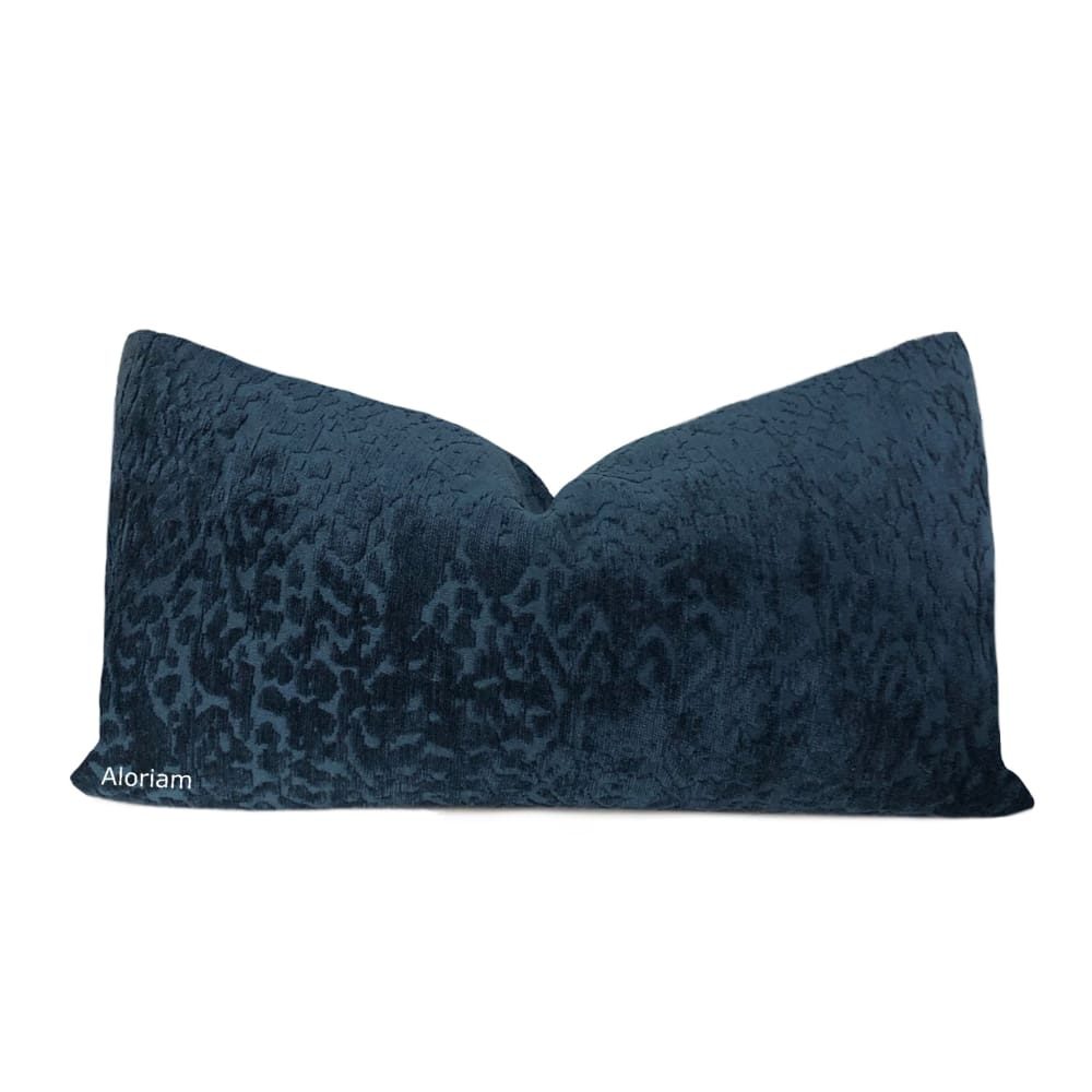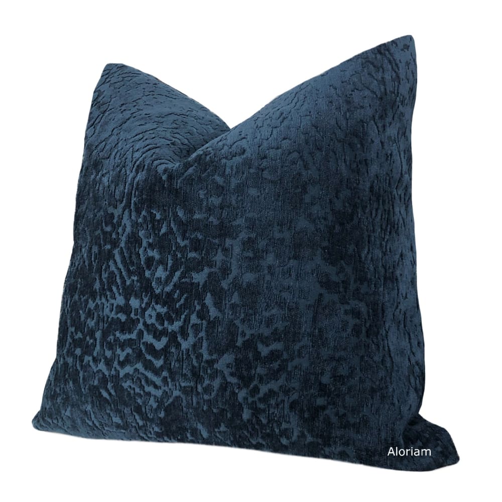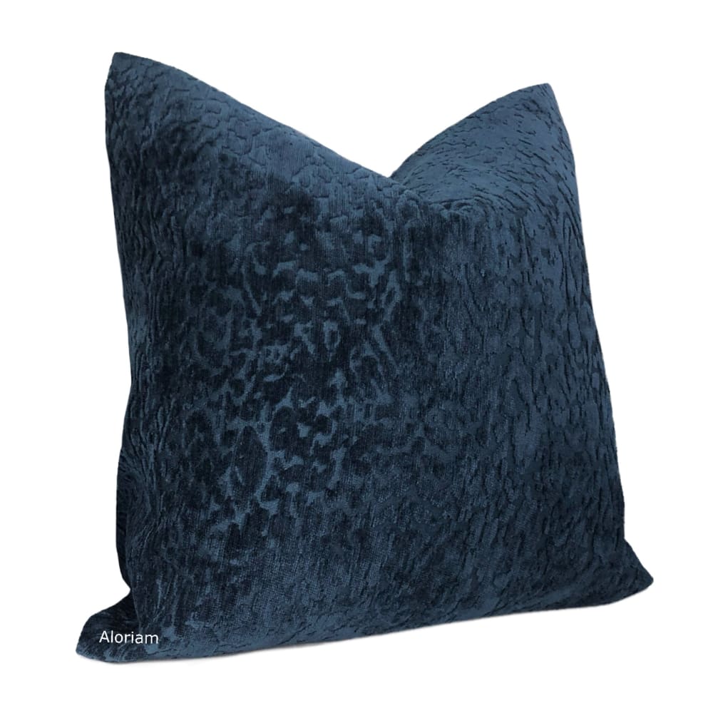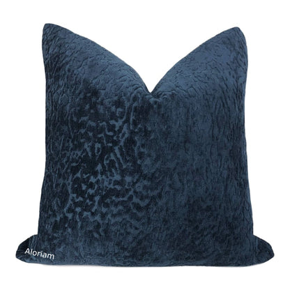 Regis Navy Blue Leopard Textured Chenille Pillow Cover