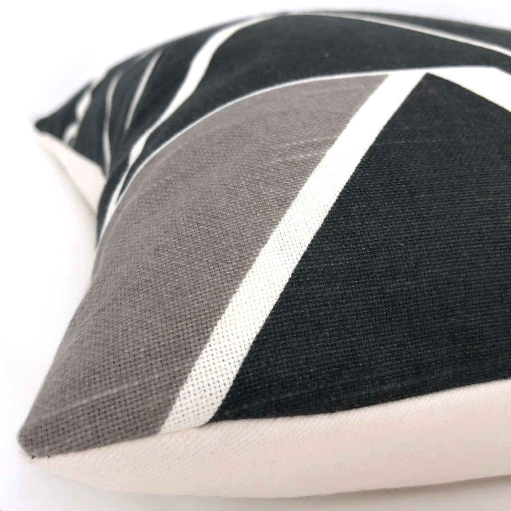 Riverton Modern Geometric Charcoal Gray White Taupe Pillow Cover (Fabric by the Yard available)