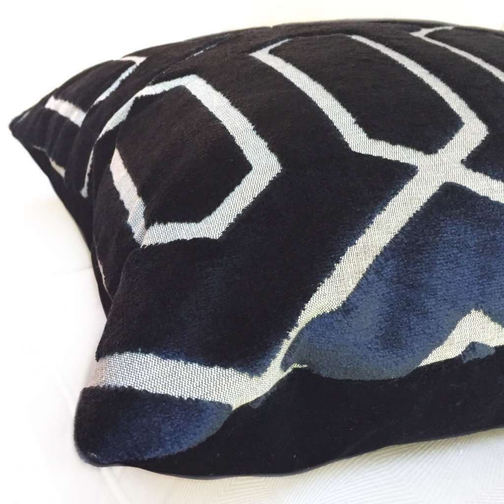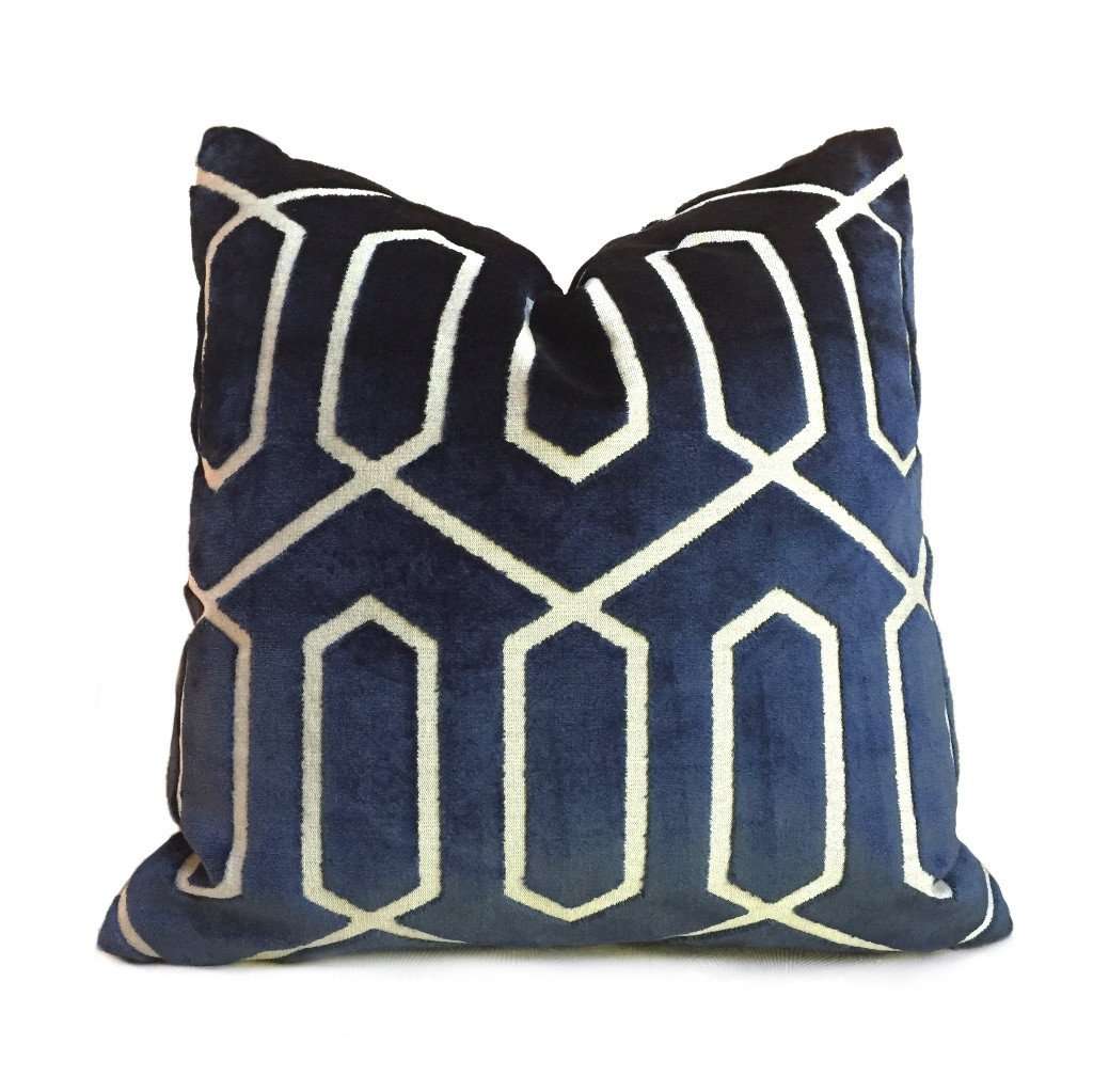 Robert Allen Bengal Lattice Geometric Midnight Navy Blue Italian Cut Velvet Pillow Cover