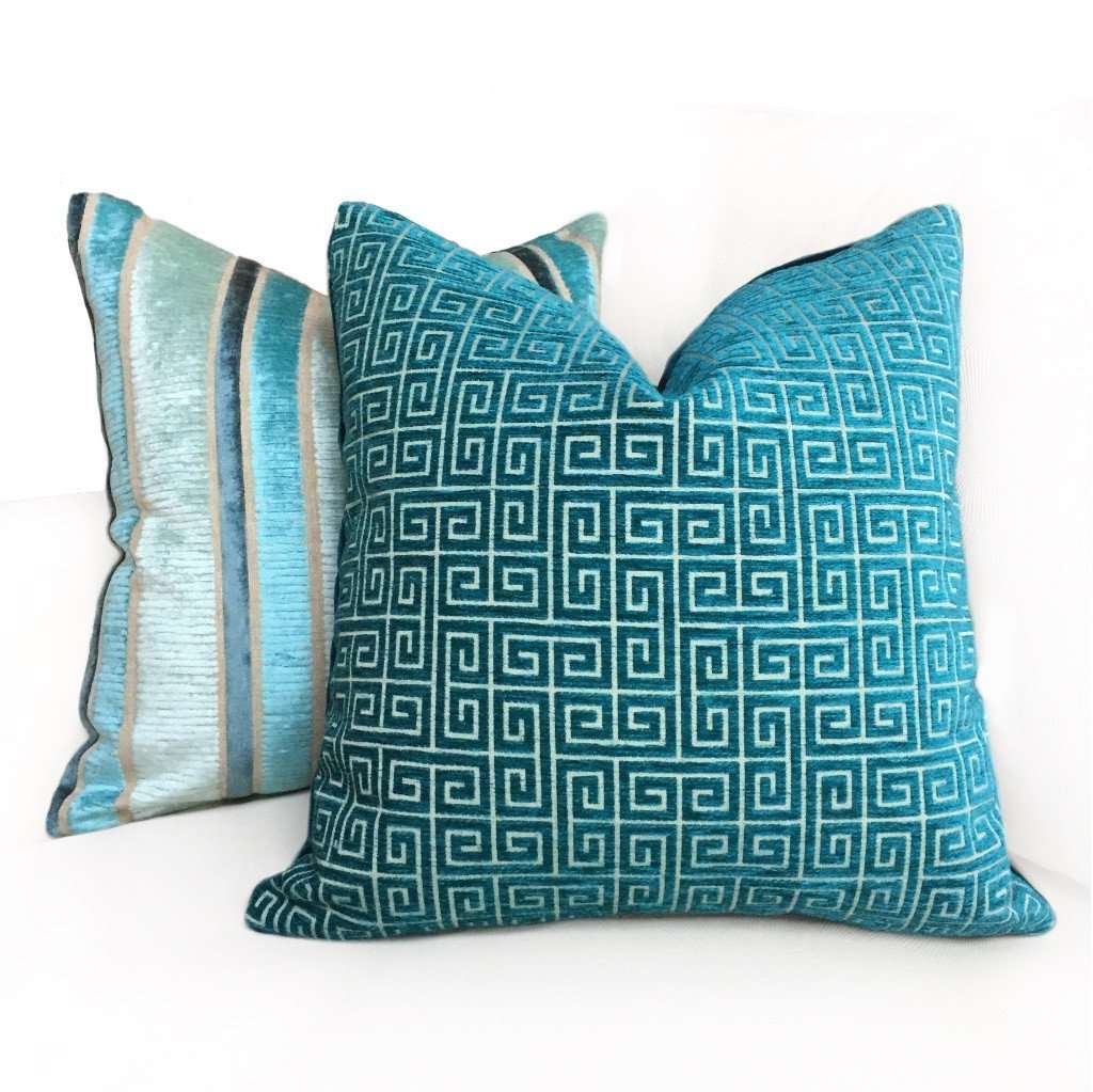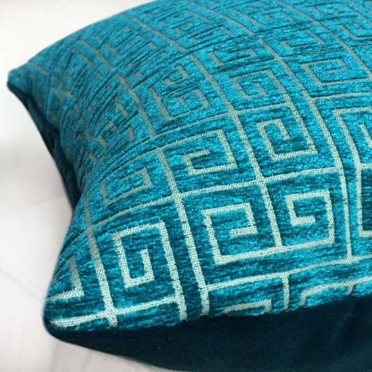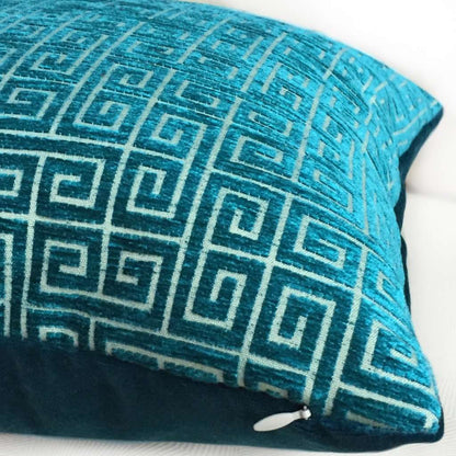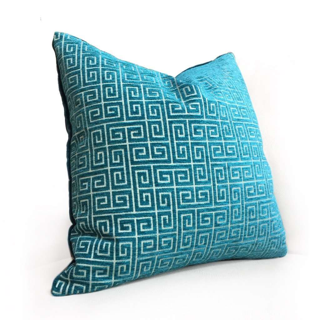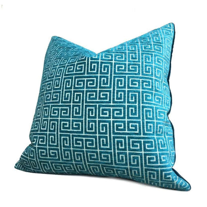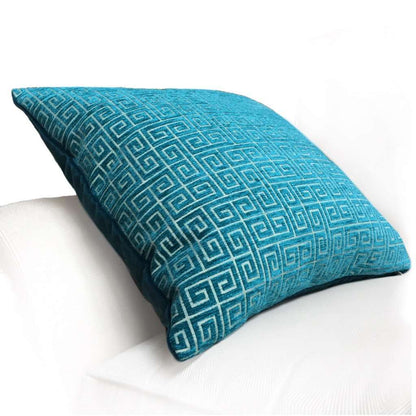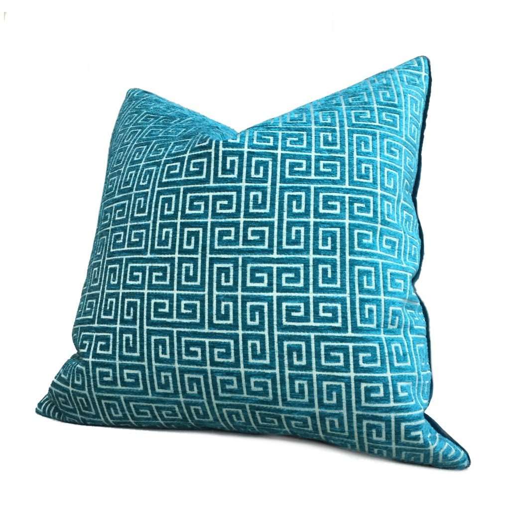 Robert Allen Bright Turquoise Teal Green Textured Greek Key Pillow Cover