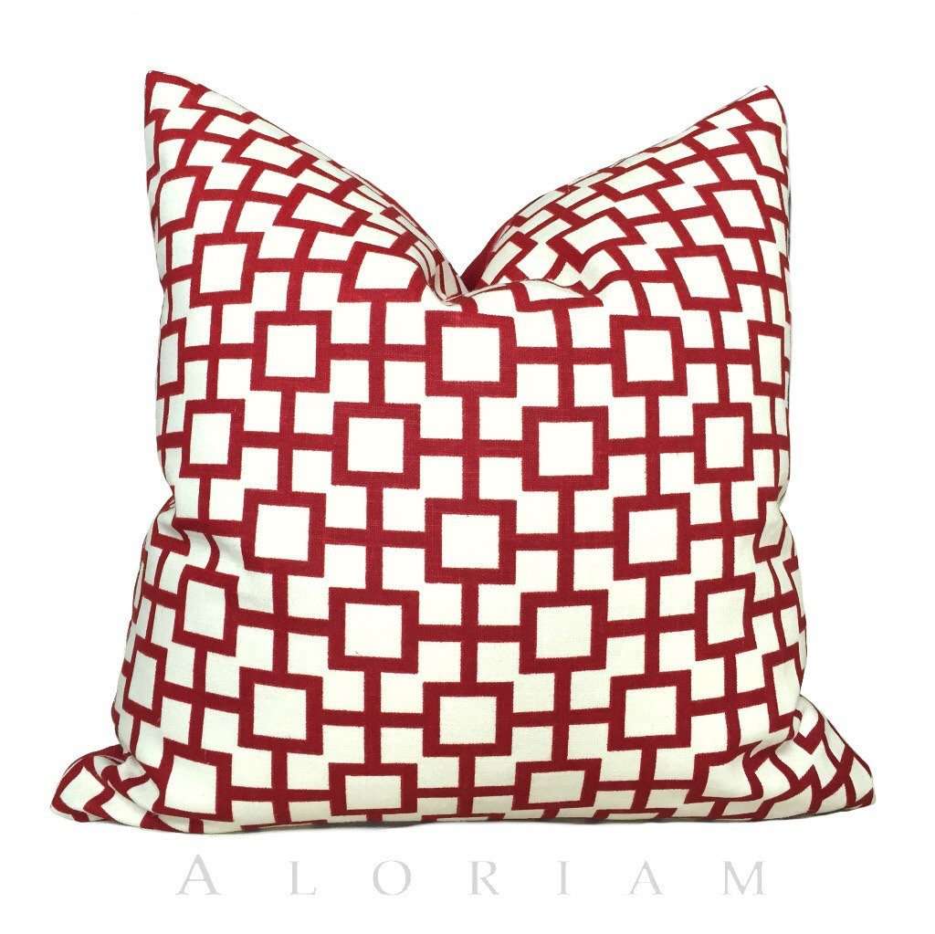 (CLEARANCE) Robert Allen Cats Cradle Red Cream Geometric Squares Linen Pillow Cover