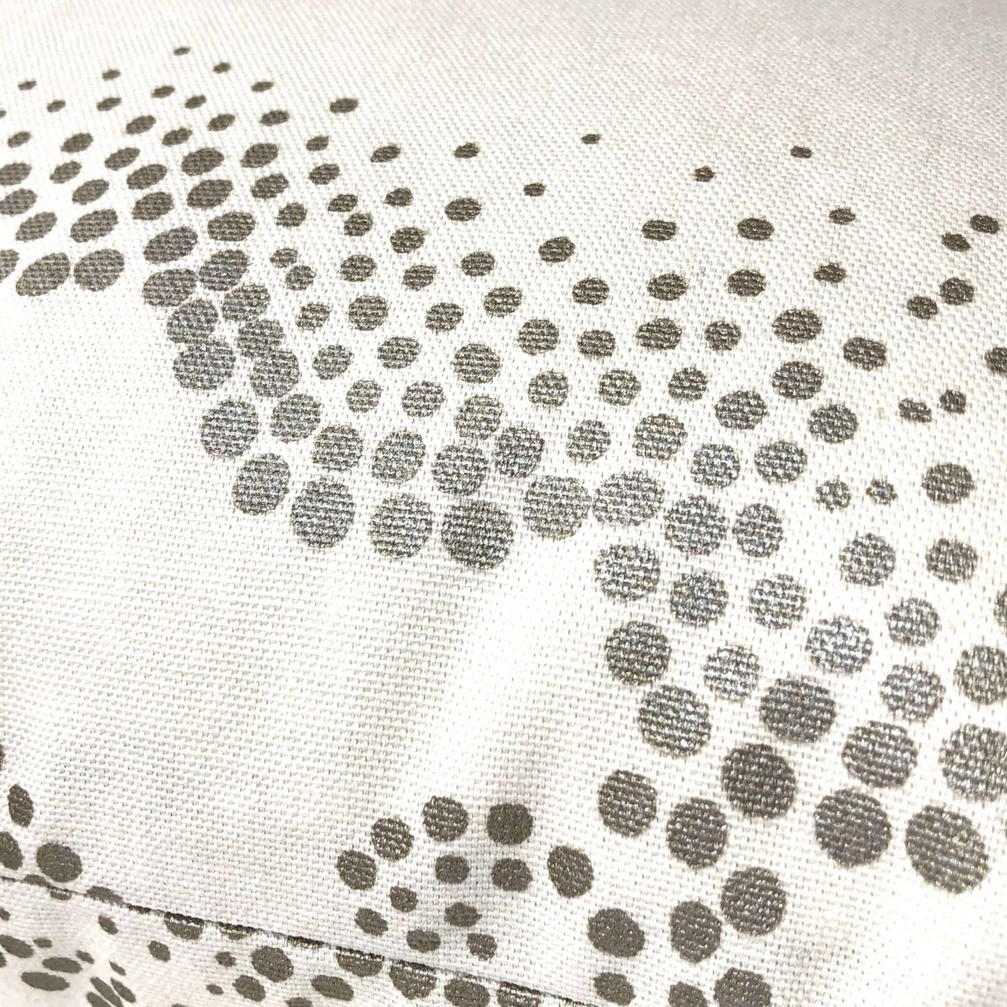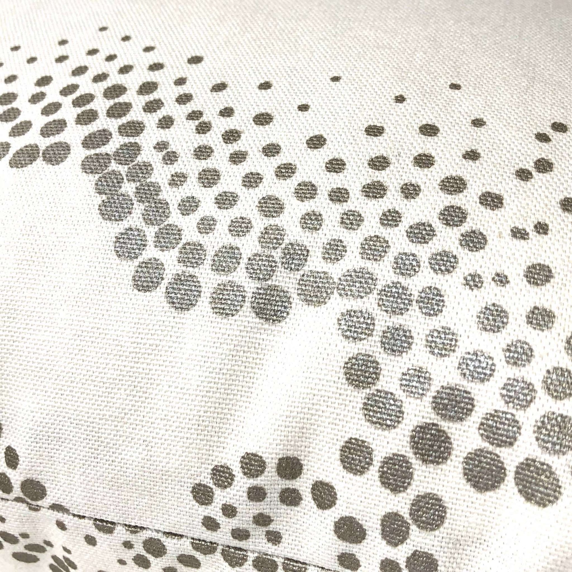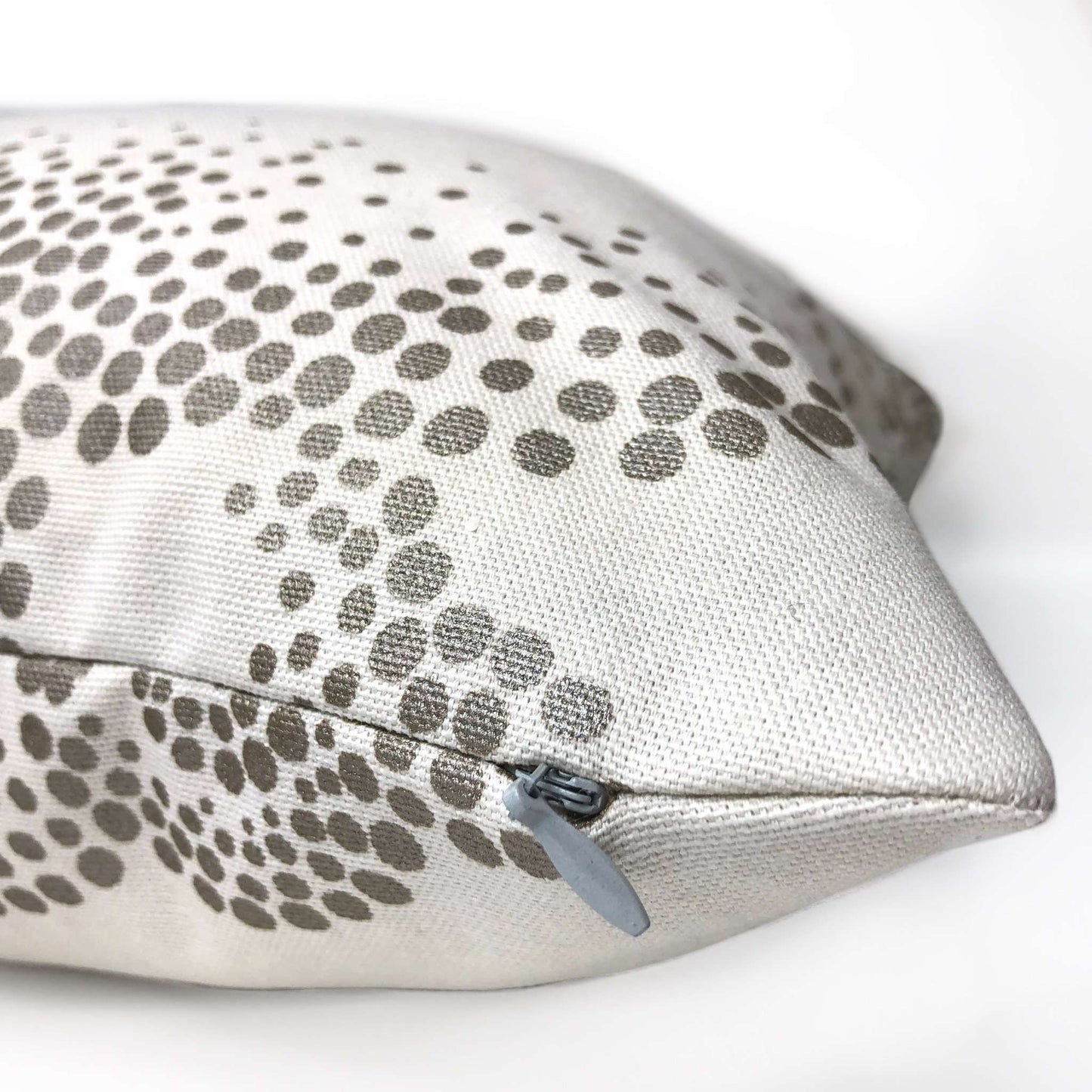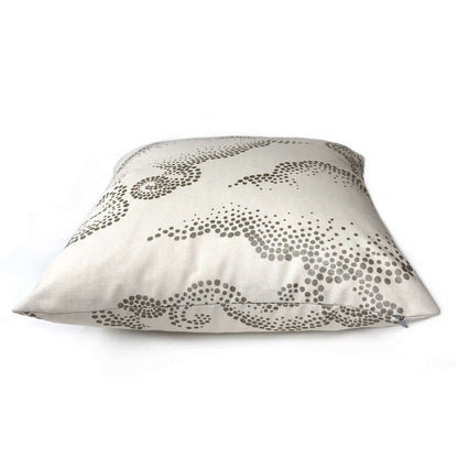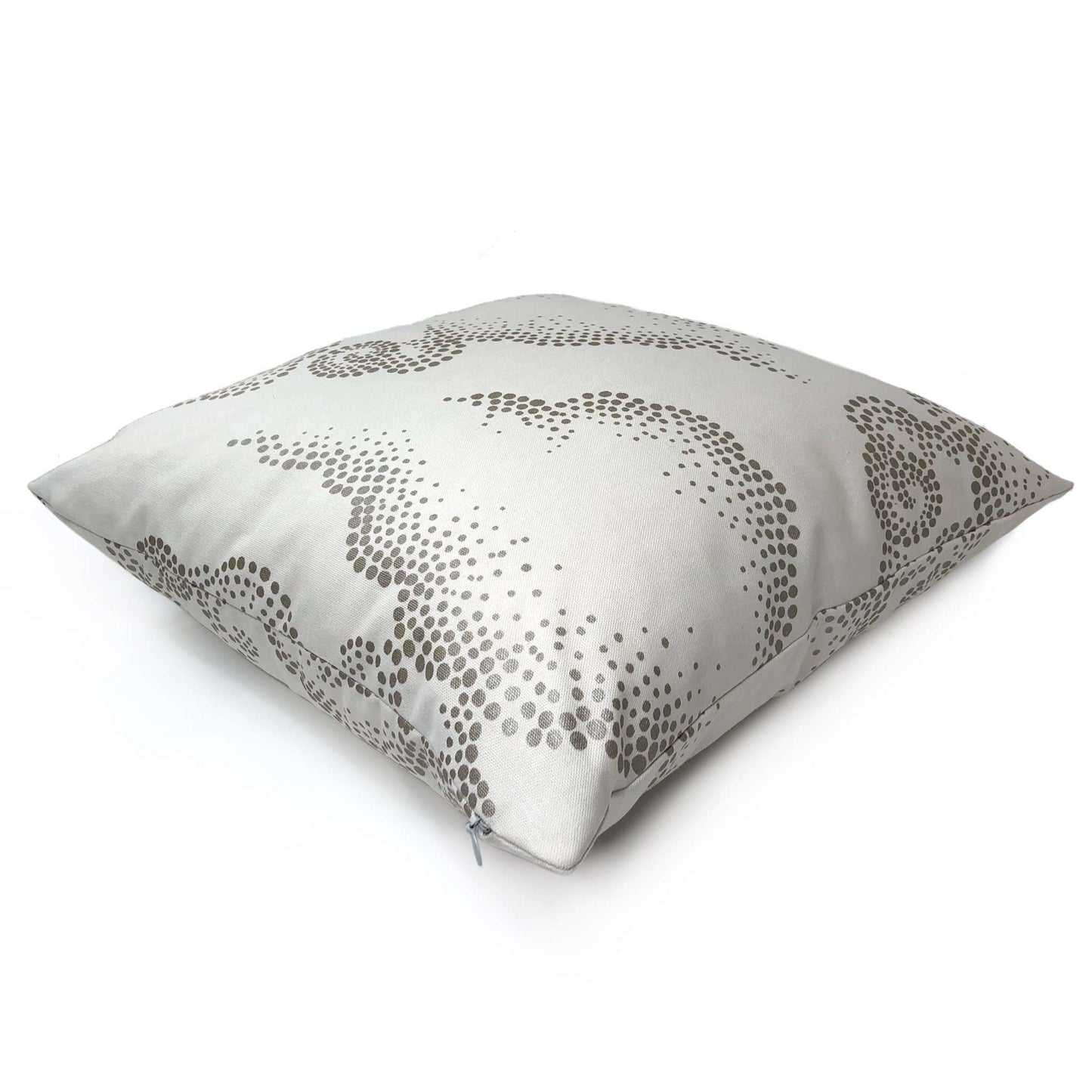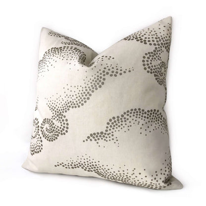 Sewn in a designer abstract print by Dwell Studio and Robert Allen, this pillow cover features an Asian-inspired cloudburst pattern printed in a silvery gray on an off-white background.