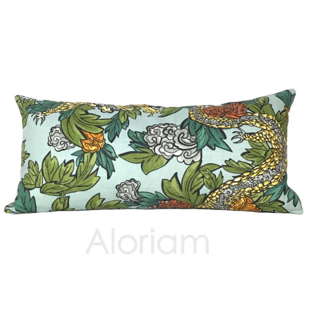 Robert Allen Dwell Studio Ming Dragon Chinoiserie Pillow Cover in Aquatint