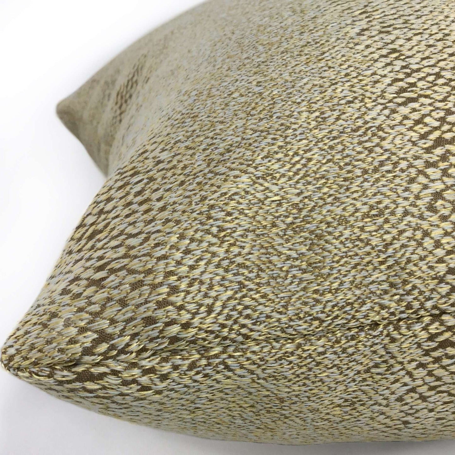 Low stock! This gold pillow cover features a woven faux snakeskin pattern that will look stunning in any decor.