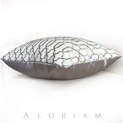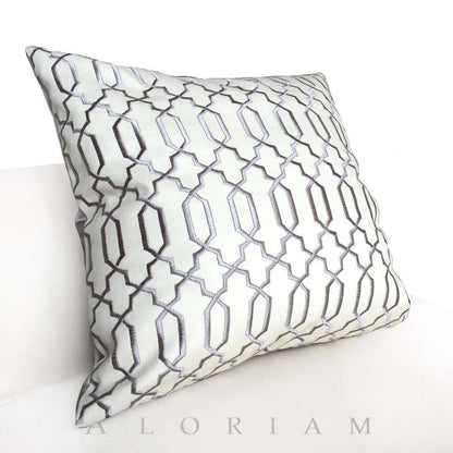 Elysa Gray & Cream Embroidered Lattice Fretwork Pillow Cover