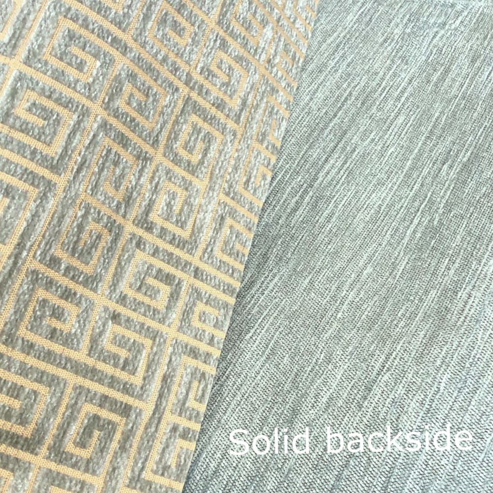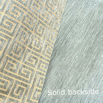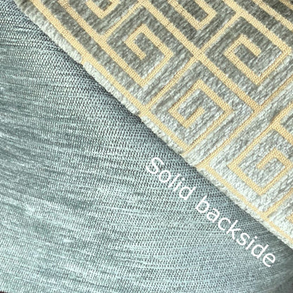 The fabric is upholstery weight and has the Greek key pattern woven into the fabric for long lasting beauty. Check out photo 4 for a close up of this high end fabric. This pillow cover reverses to a matching solid velvet fabric on the backside (will be different from the one pictured but it will be a well-coordinating solid).